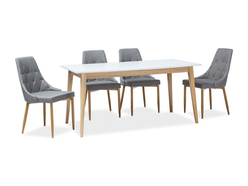 Moderní jídelní rozkládací stůl v elegantním a praktickém provedení. Nohy stolu jsou vyrobeny ze dřeva v barvě dub, deska stolu je z kvalitní LTD lakované bílou barvou odolnou proti oděru. Plocha stolu před rozložením je 68 x 120 cm, plocha stolu po rozložení je 68 x 165 cm. K tomuto stolu doporučujeme židle z naší nabídky. Dodáváme v demontovaném stavu.Doplňkové parametry