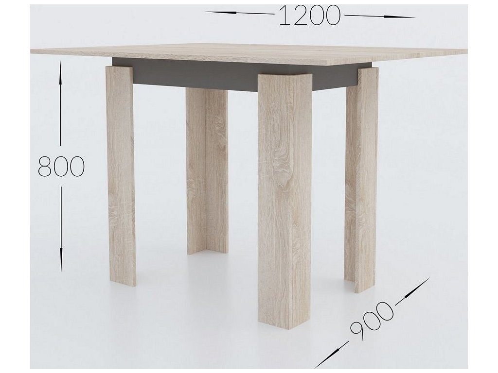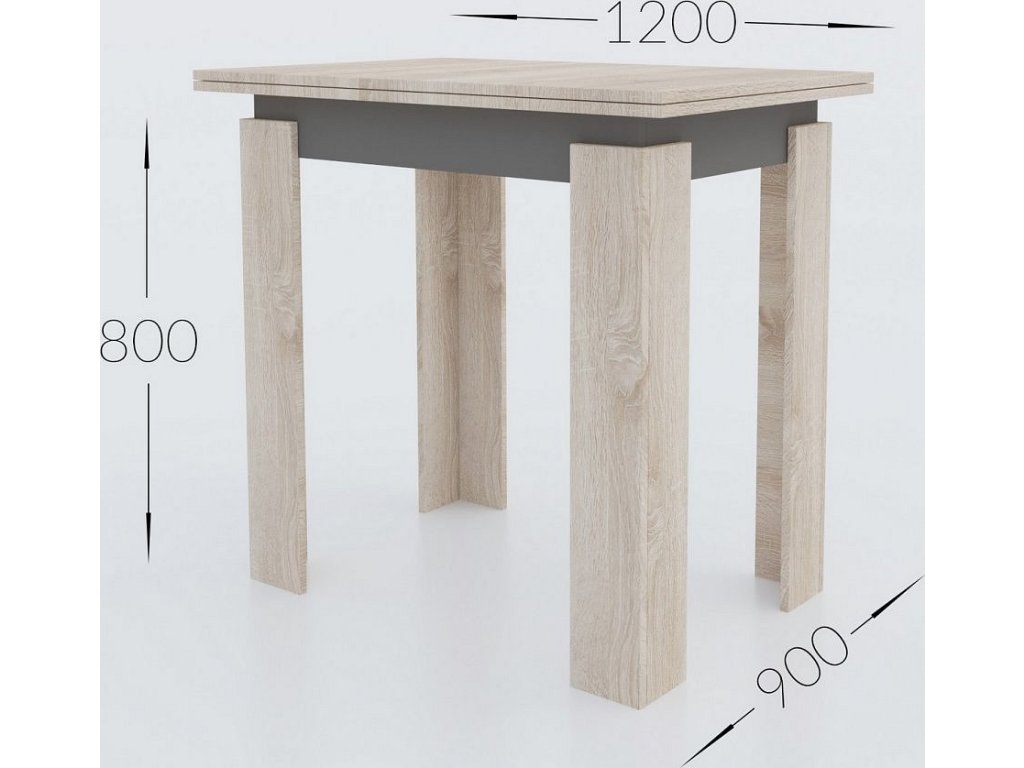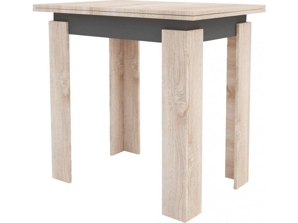 Rozkládací jídelní stůl v moderním provedení je vyroben z kvalitní LTD v kombinaci barev dub sonoma/šedý antracit. Plocha stolu před rozložením je 90x60 cm, plocha stolu po rozložení je 120x90 cm. Dodáváme v demontovaném stavu.Doplňkové parametry
