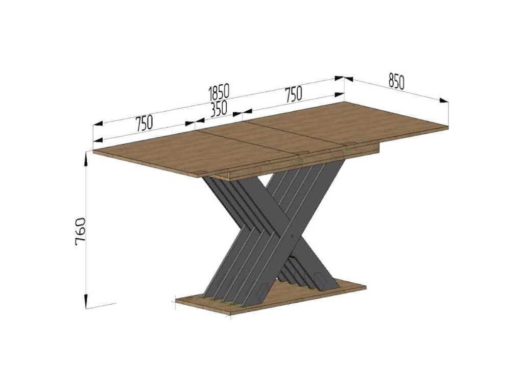 Rozkládací jídelní stůl v elegantním provedení bude dominantním prvkem v kuchyni, jídelně či kanceláři. Stůl je vyroben z kvalitní LTD v kombinaci barev dub kraft tabaco/antracit. Plocha stolu před rozložením je 150x85 cm, plocha stolu po rozložení je 185x85 cm. K tomuto stolu doporučujeme židle z naší nabídky. Dodáváme v demontovaném stavu.Doplňkové parametry
