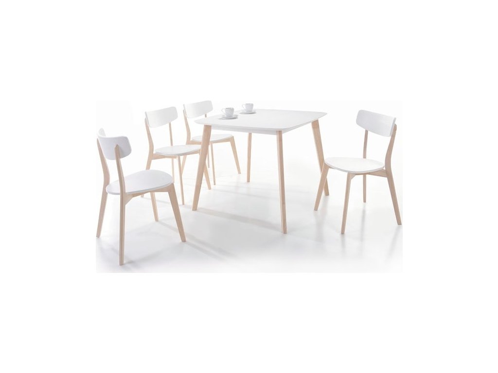 Moderní jídelní stůl v elegantním stylu. Je vyroben ze dřeva v barvě bělený dub, deska stolu je z MDF bílé barvy. Stůl je určený pro 4 osoby. K tomuto stolu doporučujeme židle, které naleznete v nabídce.Doplňkové parametry