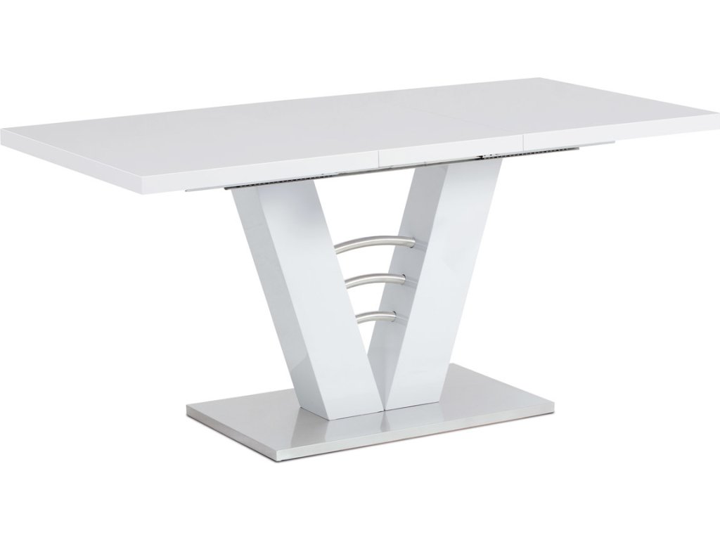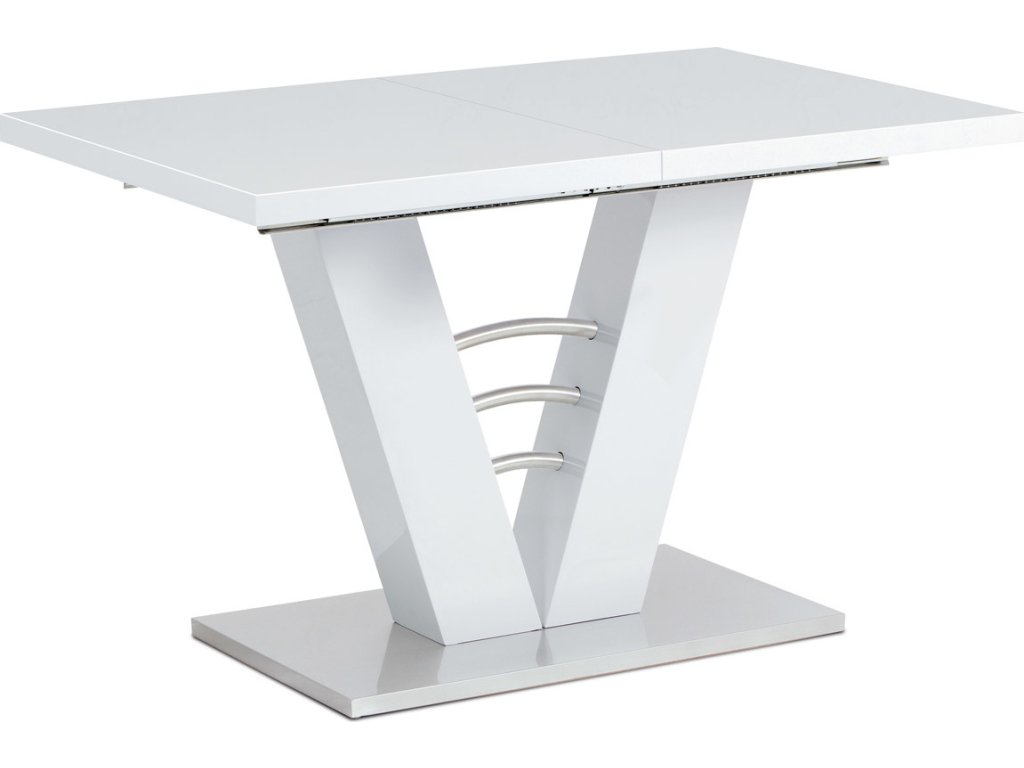 Rozkládací jídelní stůl 120+40x80 cm, bílý lesk / broušený nerez