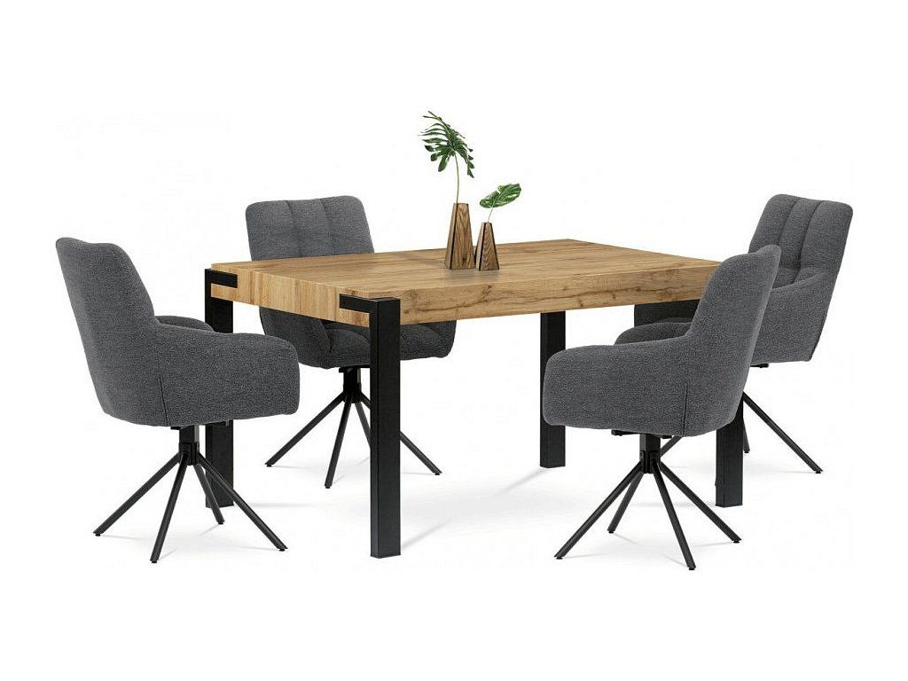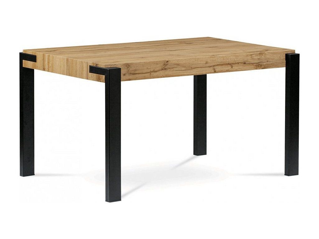 Stůl jídelní, 140x88x75 cm, MDF, kov, dekor divoký dub, černá