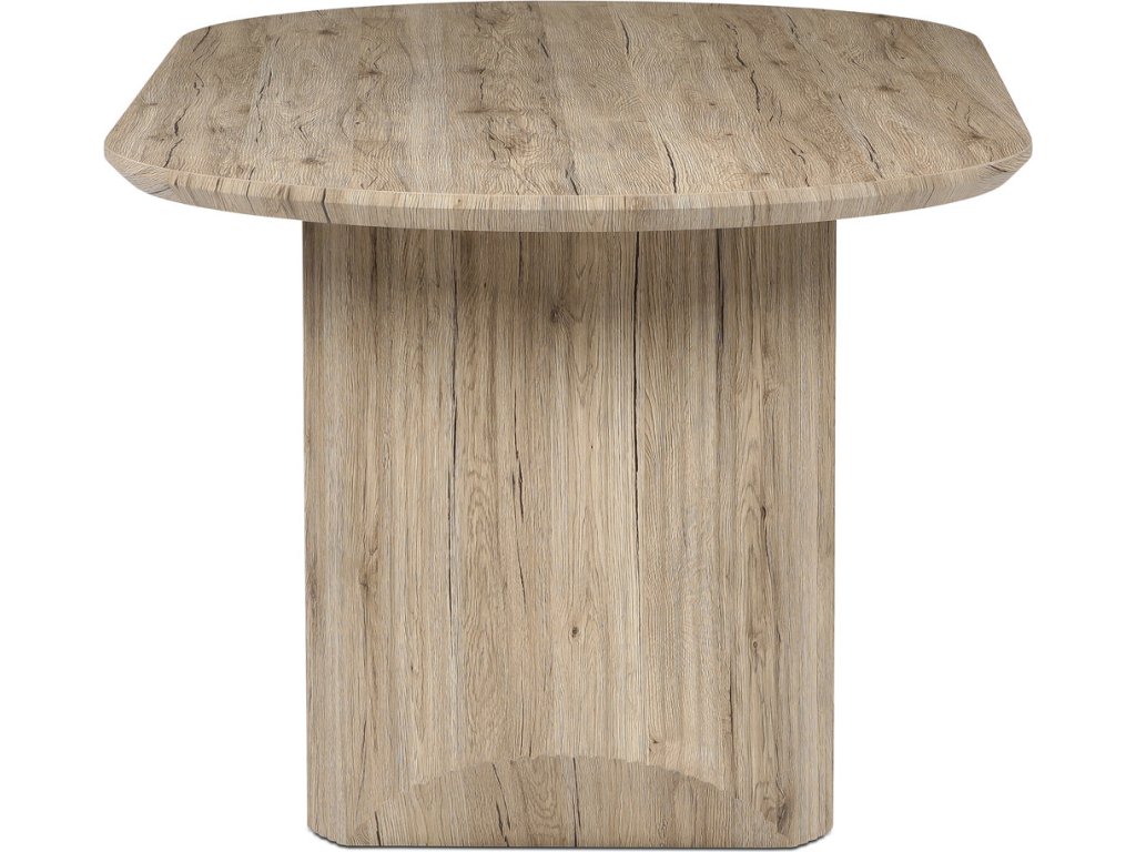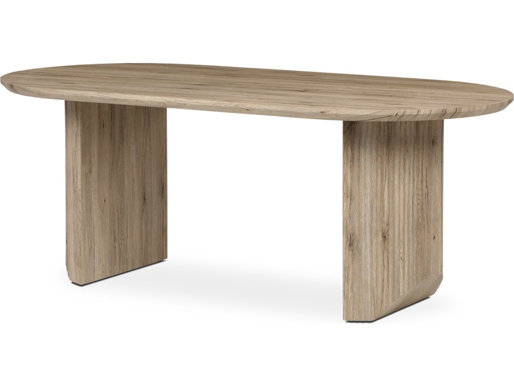 Jídelní stůl značky Autronic v přírodní dubové barvě vyniká moderním designem a kvalitním zpracováním. Oválná deska z MDF materiálu je odolná a snadno udržovatelná, což z něj činí ideální volbu pro rodinné večeře i slavnostní příležitosti. Matná povrchová úprava a detailně propracované nohy dodávají stolu stylový vzhled.Doplňkové parametry