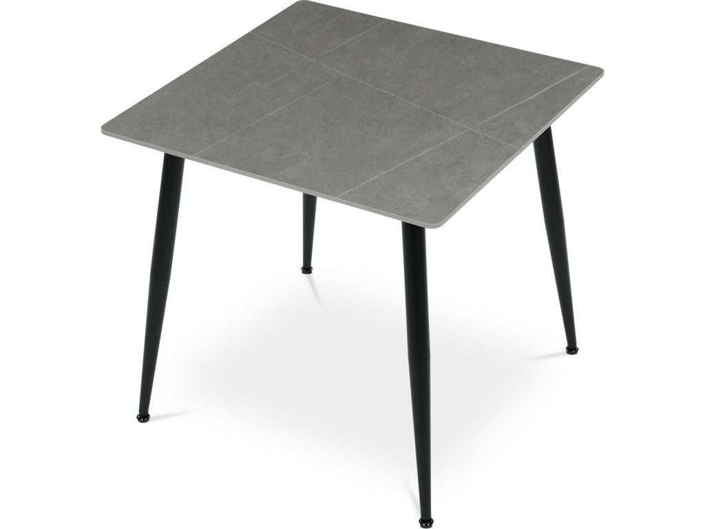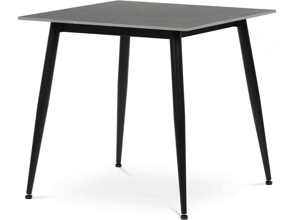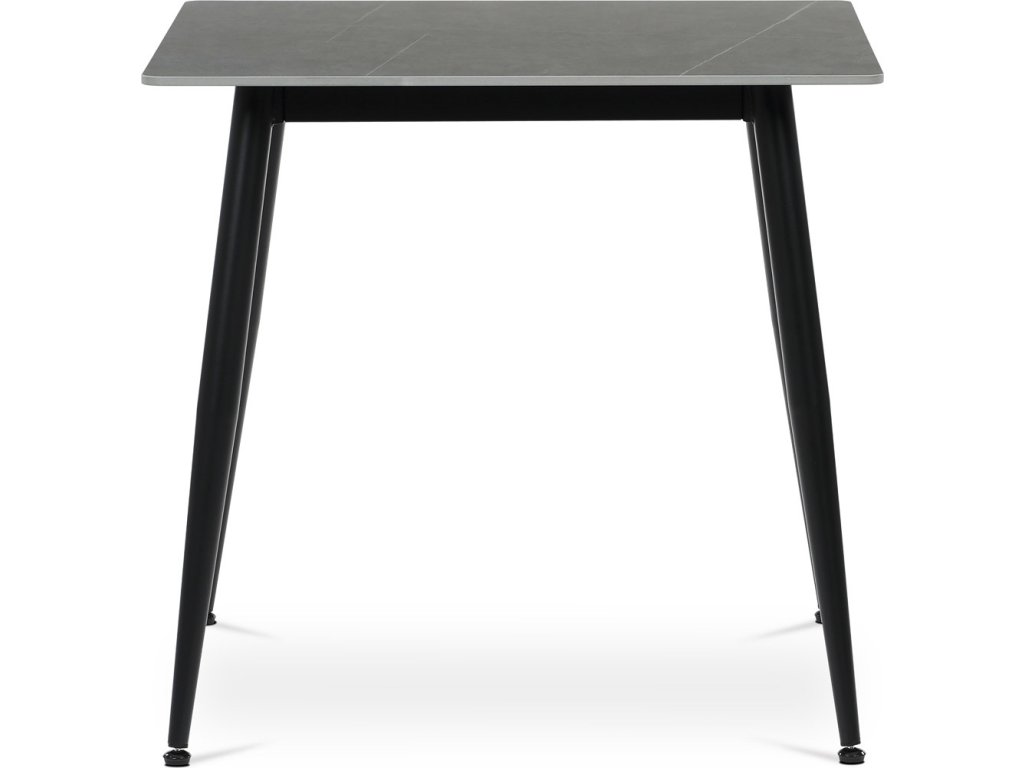 Stůl jídelní 80x80 cm, keramická deska šedý mramor, černé kovové nohy