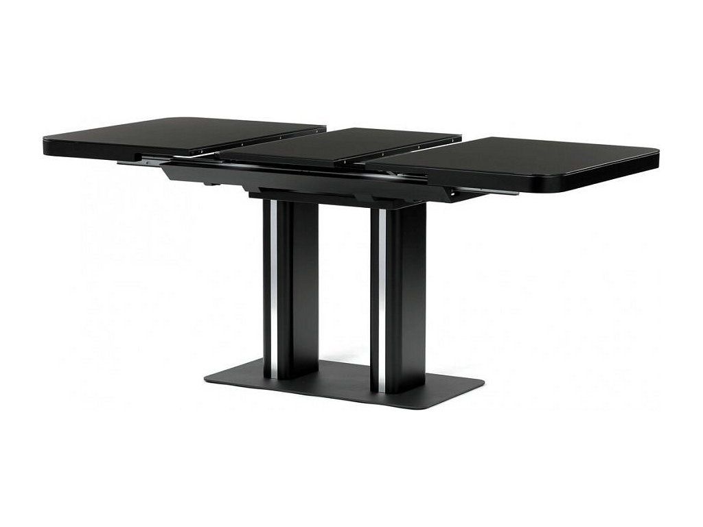 Stůl jídelní rozkládací 120+40x80x75, černý matný lak, tvrzené sklo,