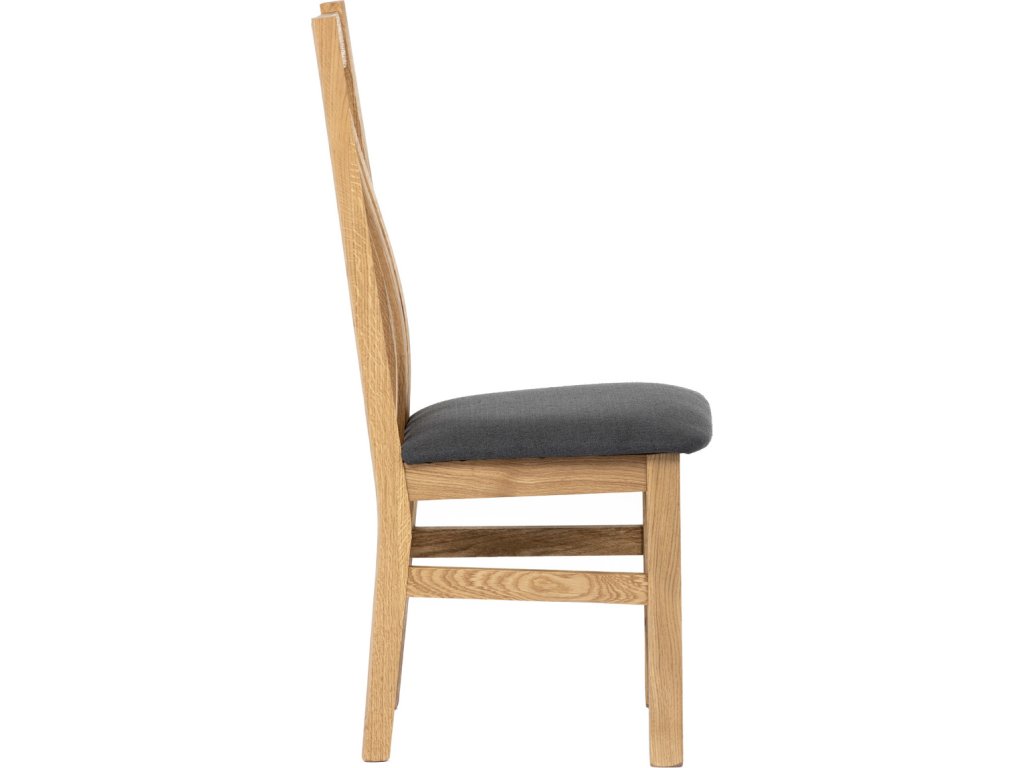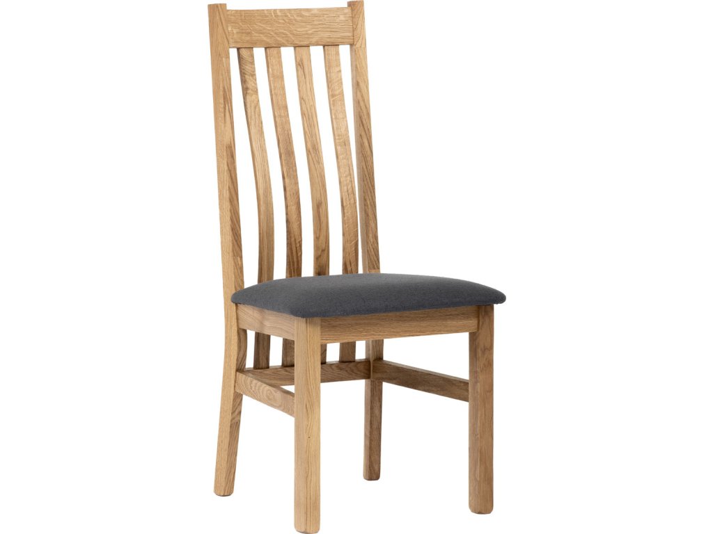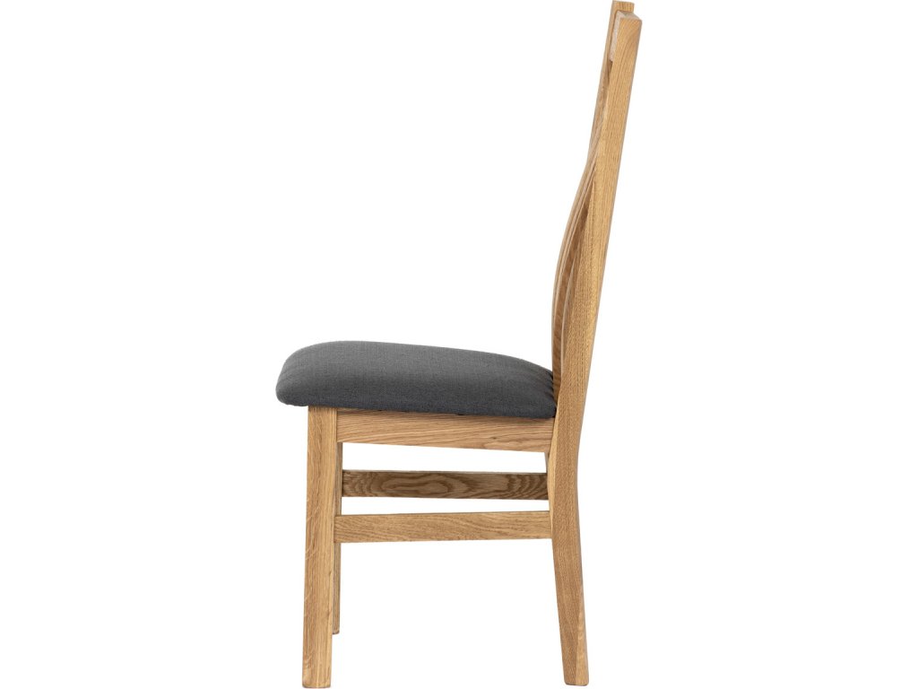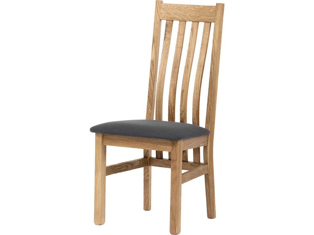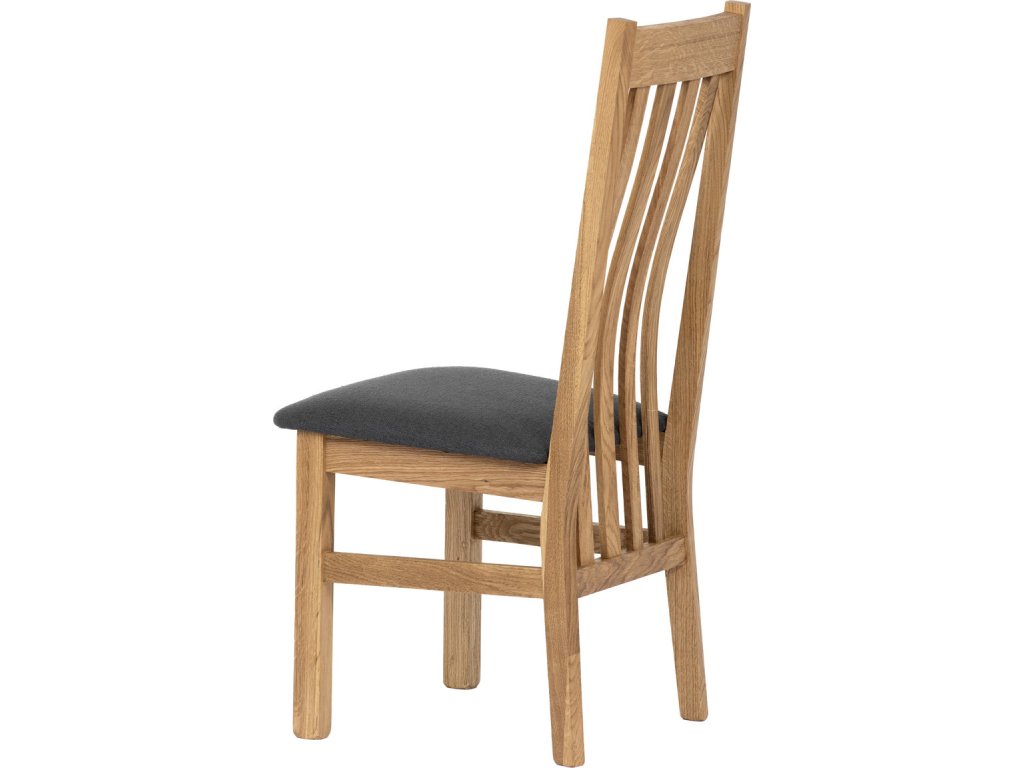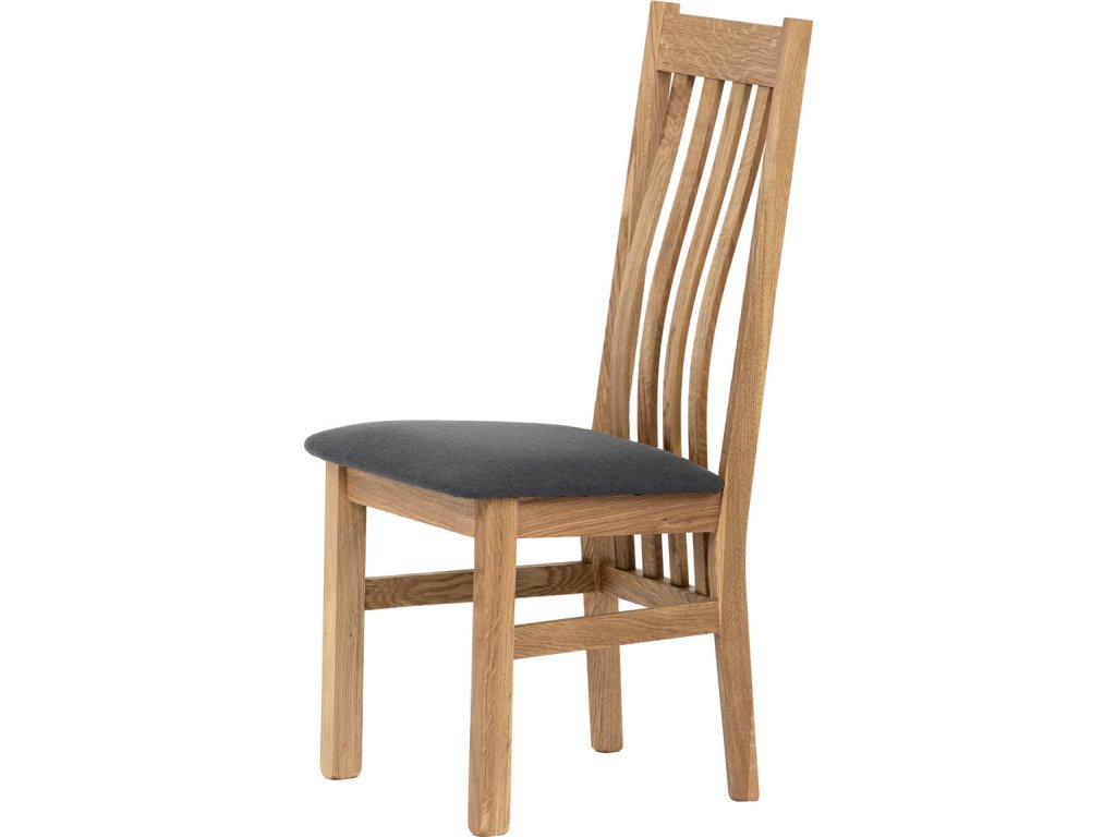 Dřevěná jídelní židle, potah antracitově šedá látka, masiv dub, přírodní odstín