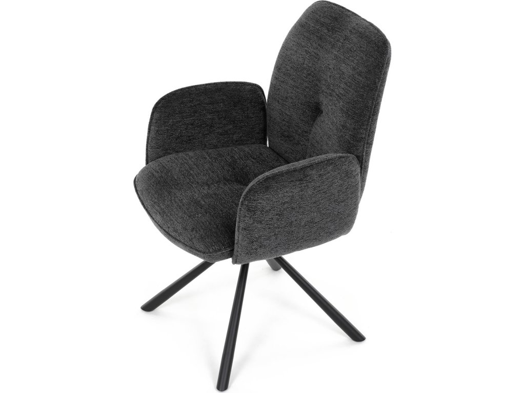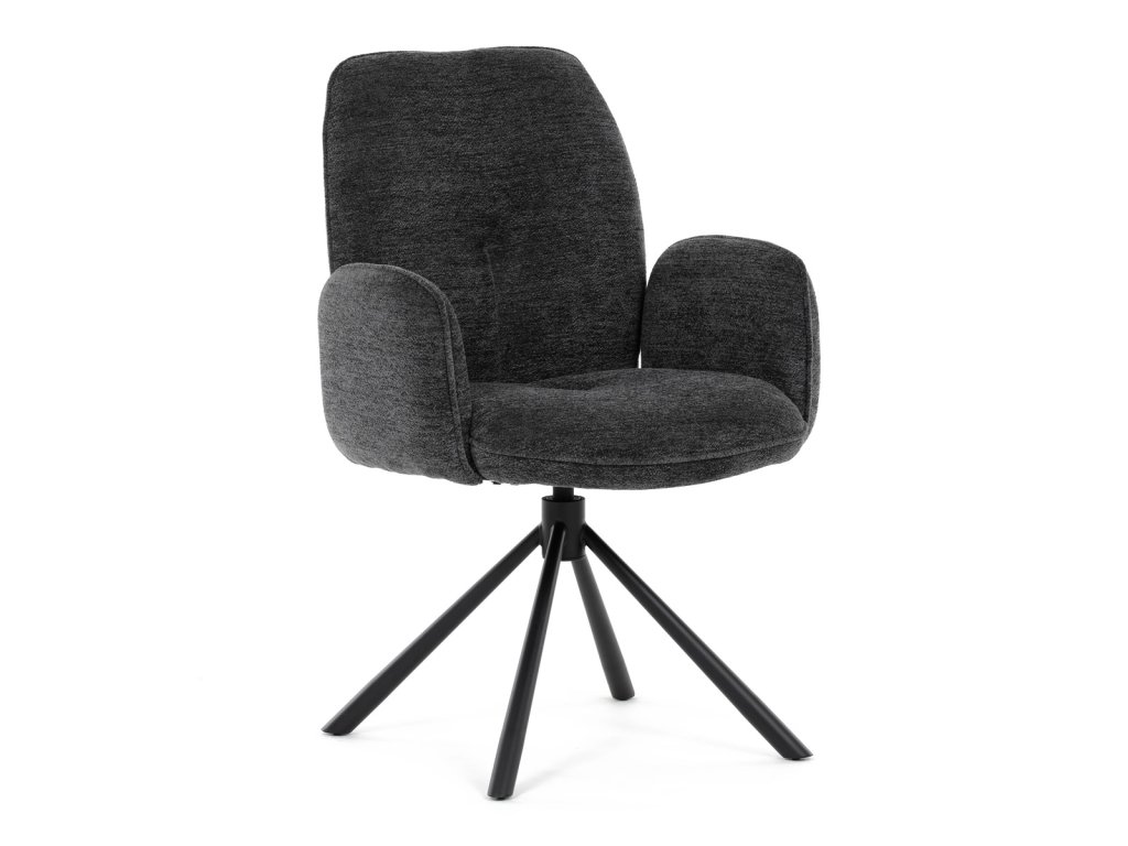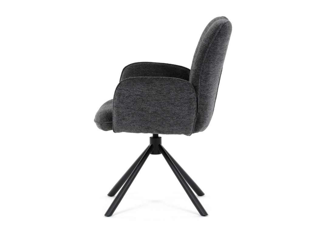 Elegantní jídelní židle značky Autronic v industriálním stylu přináší maximální pohodlí a moderní design. Čalounění z hladké látky v antracitovém odstínu je nejen stylové, ale i příjemné na dotek. Stabilní kovová podnož v černé barvě dodává židli pevnost a odolnost. Díky otočnému 360° mechanismu nabízí vysokou flexibilitu a komfort při sezení. Pohodlné područky a ergonomicky tvarovaný sedák z PU pěny zajišťují optimální oporu těla. Perfektní volba pro stylové a funkční jídelní prostory.Doplňkové parametry