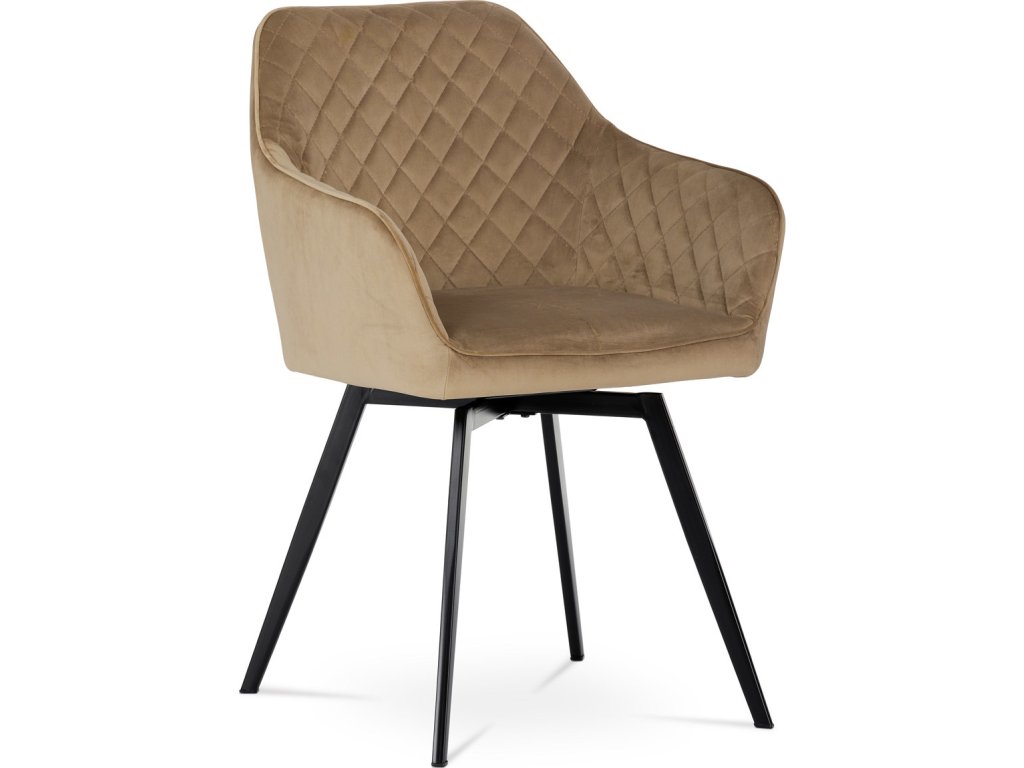 Jídelní židle, potah cappuccino sametová látka, kovové nohy, černý matný lak