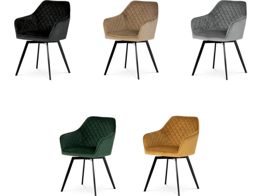 Díky svému dokonalému designu je tato židle v industriálním stylu nezaměnitelná a zároveň velmi pohodlná. Skořepina sedáku a opěradla má potah z kvalitní sametové látky v trendy odstínu zlaté cappuccino v matné úpravě. Polstrování je z PU pěny. Velmi dekorativním prvkem je výrazné kosočtvercové prošití vnitřních ploch v barvě potahu a paspule po obvodu celé skořepiny. Vybraná látka se také velmi dobře čistí. Stabilitu židle zajišťují čtyři kónické kovové nohy obdélníkového průřezu s kvalitním práškovým nástřikem v černé matné barvě. Ukončené jsou černými plastovými kluzáky, zabraňující poškození tvrdých povrchů podlah. Tato provedení produkují z tohoto modelu židle skvělou volbu pro zařízení obývacích či jídelních, ale také zasedacích místností. Nosnost židle je 110 kg. Bonusem této židle je otočný a vratným mechanismus, který umožňuje otáčení o 90° doleva a o 90° doprava a zároveň vždy vrátí sedák do původní polohy. Díky němu žiidle zůstanou vždy srovnané u stolu.Doplňkové parametry