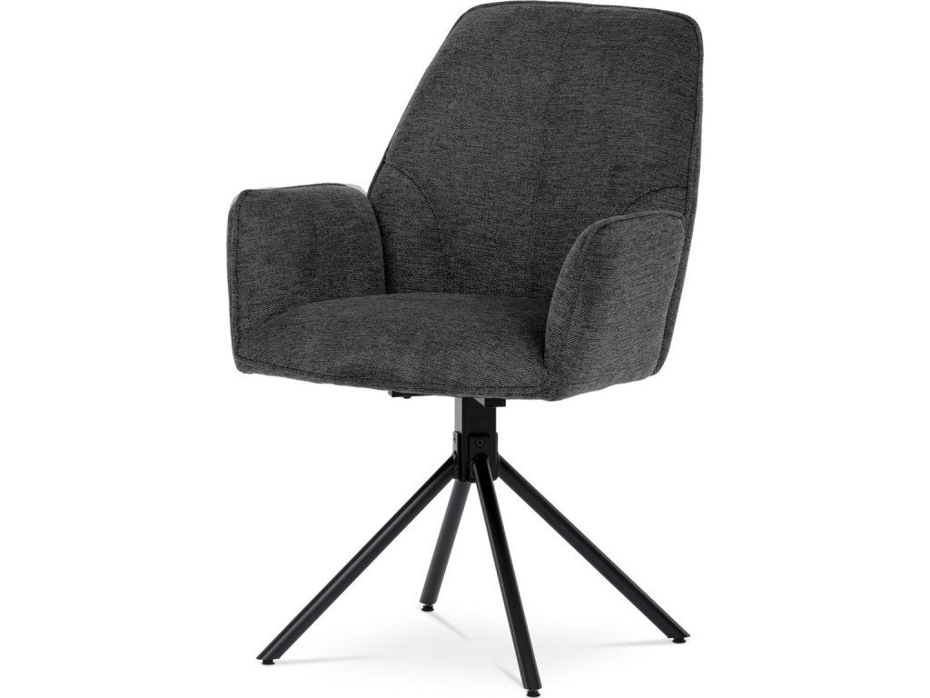 Jídelní židle v šedé látce s područkami, otočná s vratným mechanismem - funkce reset, kovové podnoží v černé barvě