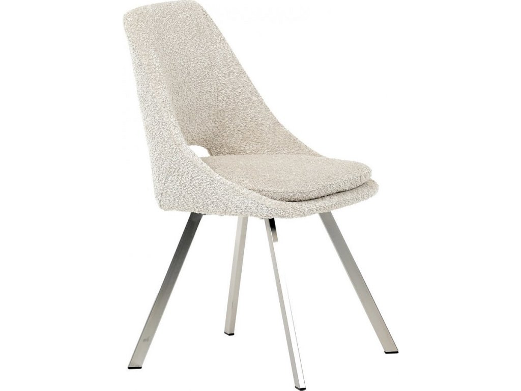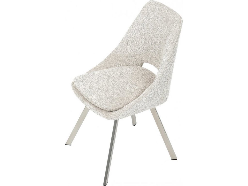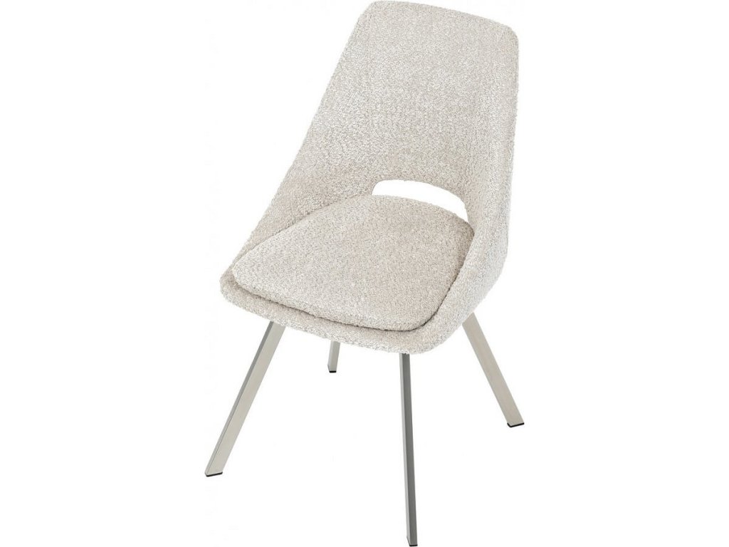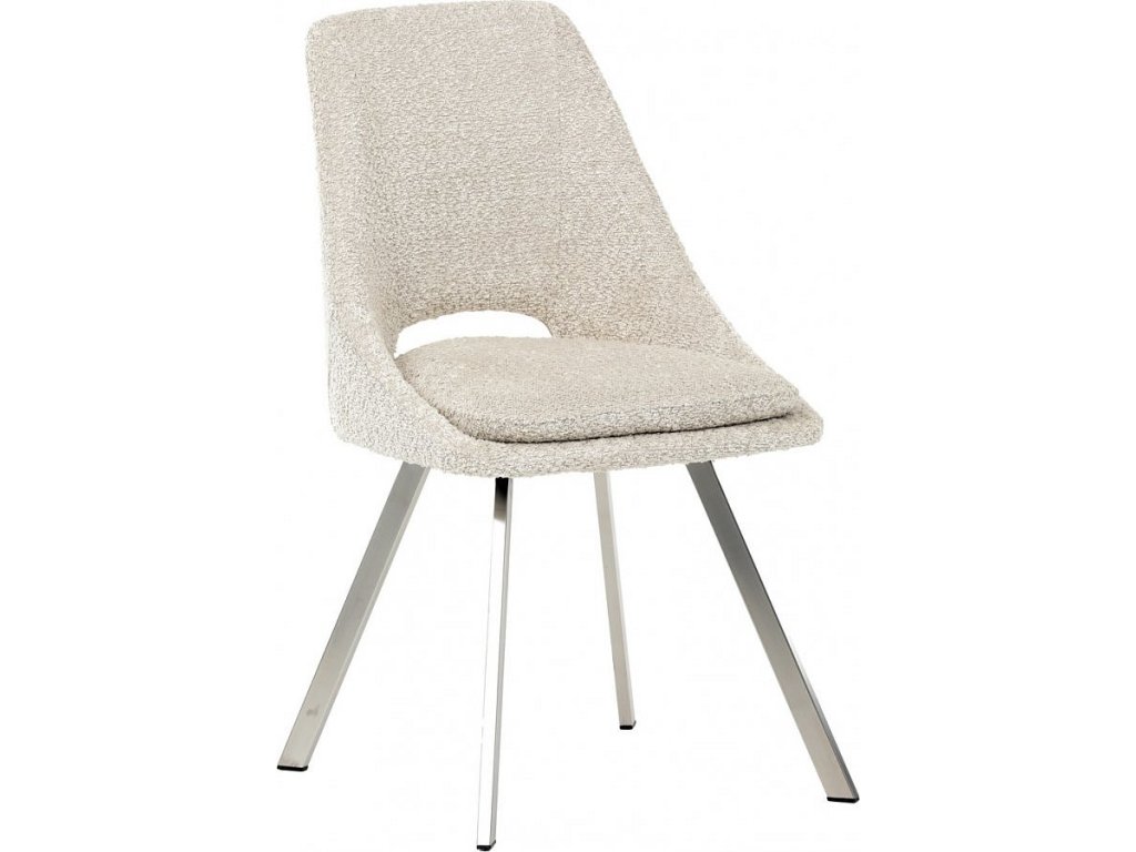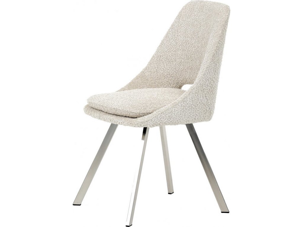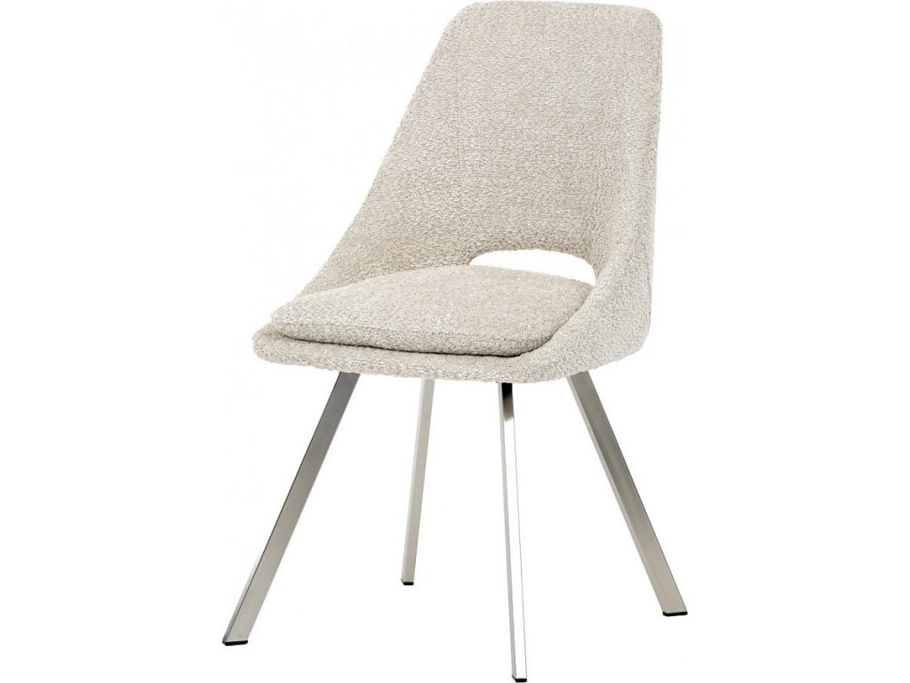 Židle jídelní, krémová látka, kovové nohy, broušená nerez.