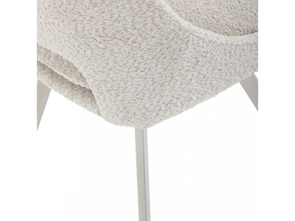 Moderní jídelní židle značky Autronic v elegantním béžovém odstínu kombinuje styl a pohodlí. Potah z měkké látky Bouclé nabízí příjemný a odolný povrch, který se skvěle hodí do moderních interiérů. Čtyři nohy z broušeného nerezu zajišťují stabilitu a moderní vzhled, zatímco výplň z PU pěny poskytuje optimální komfort při sezení. Tato židle je ideální pro jídelny nebo moderní pracovní prostory. Díky svému designu a kvalitním materiálům zajišťuje dlouhou životnost i při každodenním používání. Výrazný kousek, který vynikne v každém interiéru.Doplňkové parametry