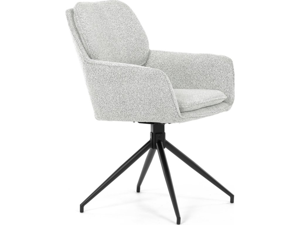 Moderní šedá jídelní židle značky Autronic nabízí elegantní a funkční řešení pro váš interiér. Pohodlné čalounění z hladké látky v kombinaci s výplní z PU pěny zajišťuje komfort i při delším sezení. Otočný mechanismus 180° s funkcí resetu vrátí židli do původní pozice, což je praktické zejména pro vizuální vzhled jídelny. Kovové nohy s centrálním podnožím zajišťují stabilitu a stylový industriální vzhled. Područky a vysoké opěradlo poskytují oporu pro maximální pohodlí. Tato židle je skvělou volbou pro moderní interiéry.Doplňkové parametry