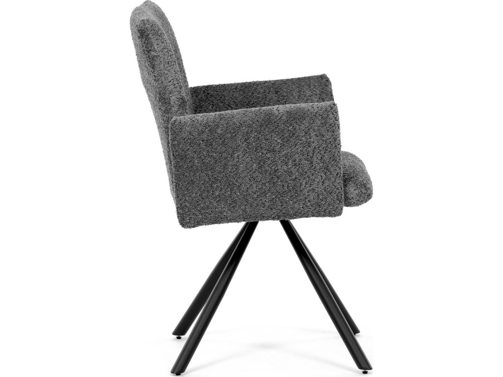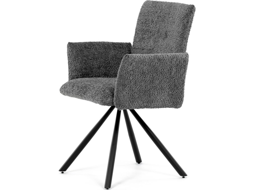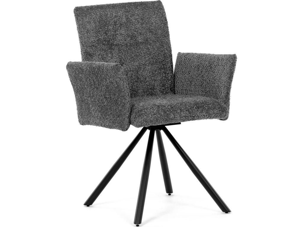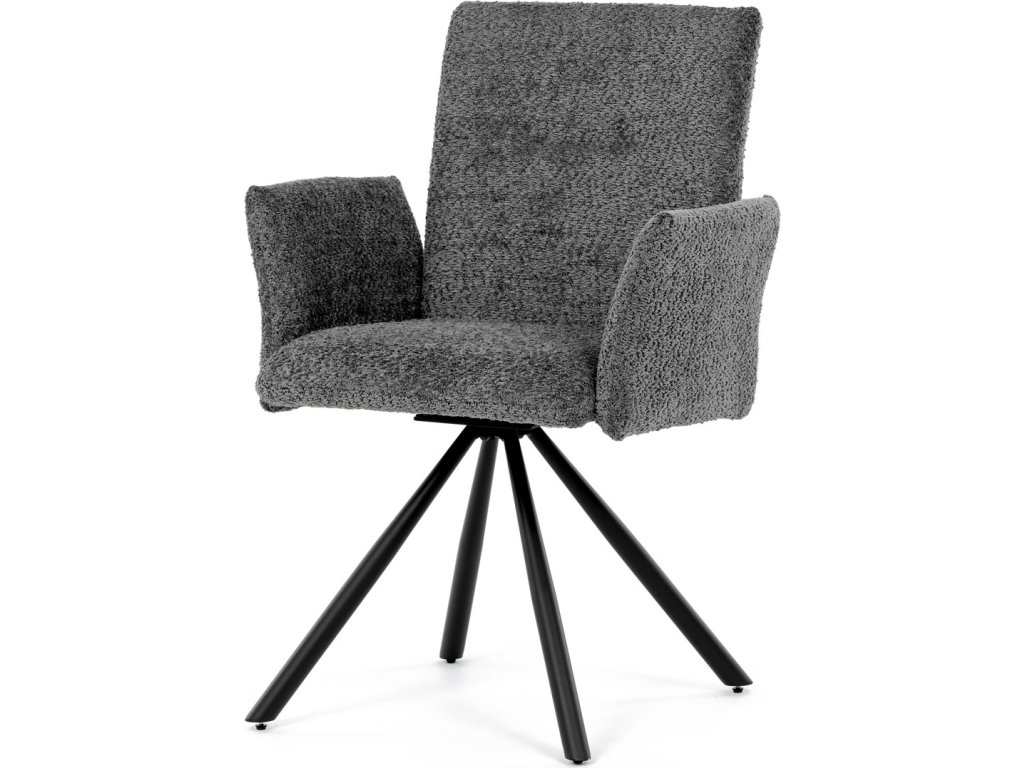 Tato moderní jídelní židle značky Autronic v industriálním stylu kombinuje pohodlí s funkčností. Otočná židle s robustní kovovou podnoží je vybavena pohodlnými područkami a látkou Bouclé, která zajišťuje příjemný a stylový vzhled. Polstrování z PU pěny nabízí měkké sezení, zatímco otočný mechanismus L90°/P90° s funkcí automatického vracení sedáku do základní polohy umožňuje snadné otáčení pro maximální flexibilitu. Černá kovová centrální podnož dodává židli stabilitu a moderní vzhled. Tato židle je ideální pro elegantní jídelny, kde se kombinuje komfort s moderním designem.Doplňkové parametry
