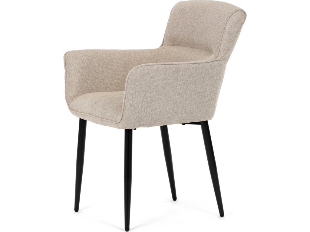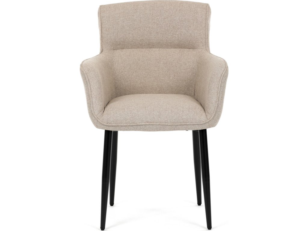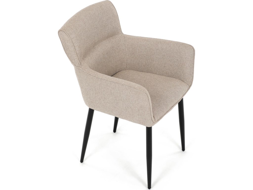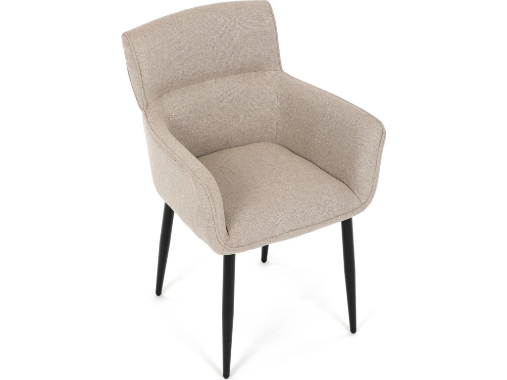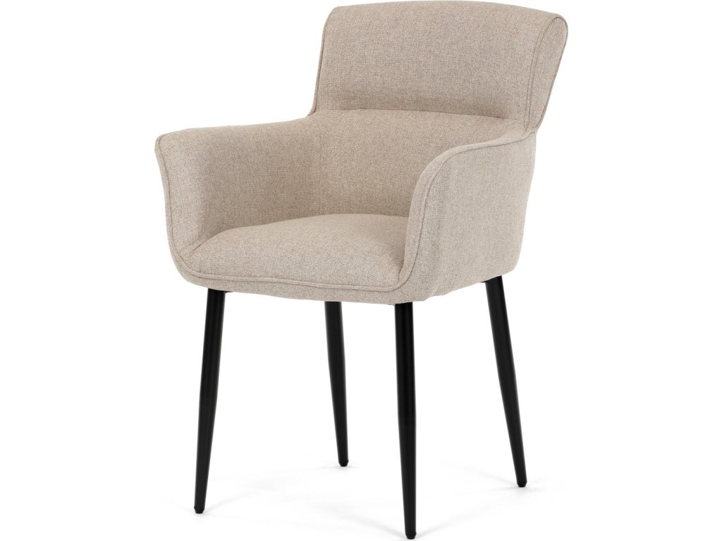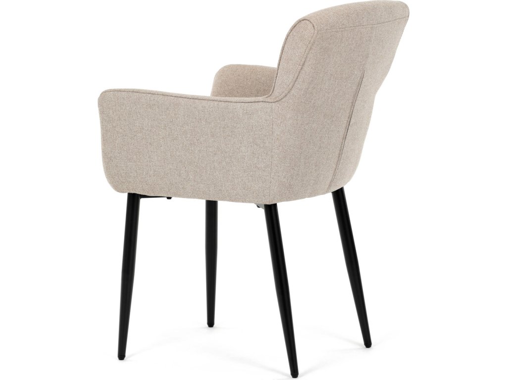 Moderní jídelní židle značky Autronic nabízí elegantní vzhled a vysoký komfort. Béžové čalounění z látky, která se snadno čistí, je ideální pro každodenní používání a zajišťuje praktickou údržbu. Pohodlné područky a měkká PU pěna ve výplni poskytují příjemné sezení. Stabilní konstrukce s černými kovovými nohami působí stylově a zajišťuje pevnost. Tato židle je skvělou volbou pro váš jídelní prostor, kde díky svému jednoduchému a funkčnímu designu perfektně zapadne do jakéhokoliv interiéru.Doplňkové parametry