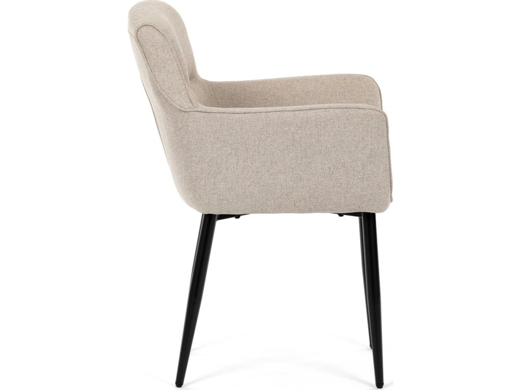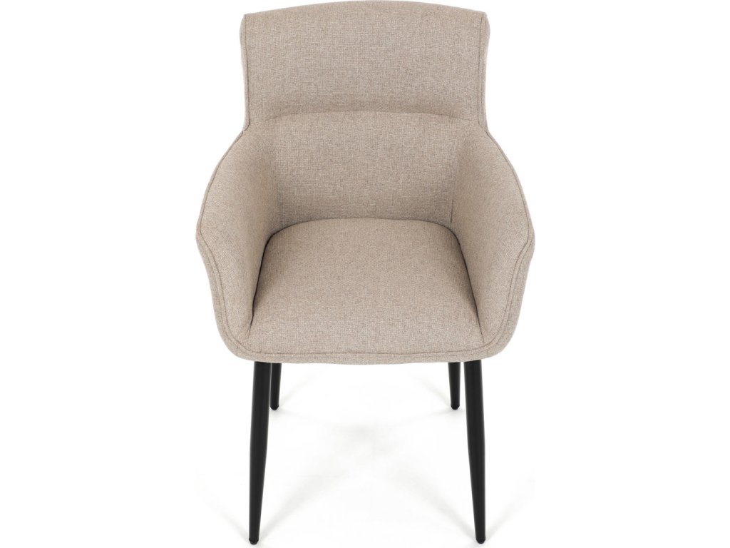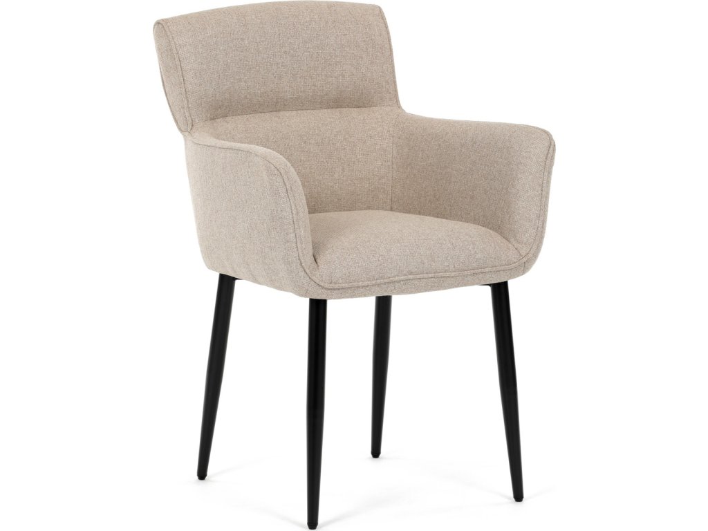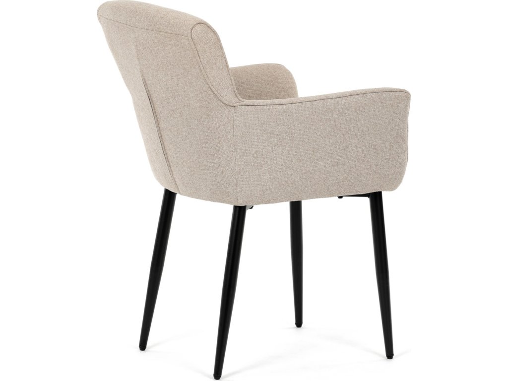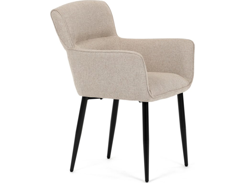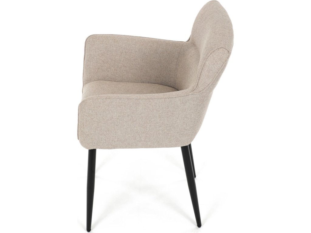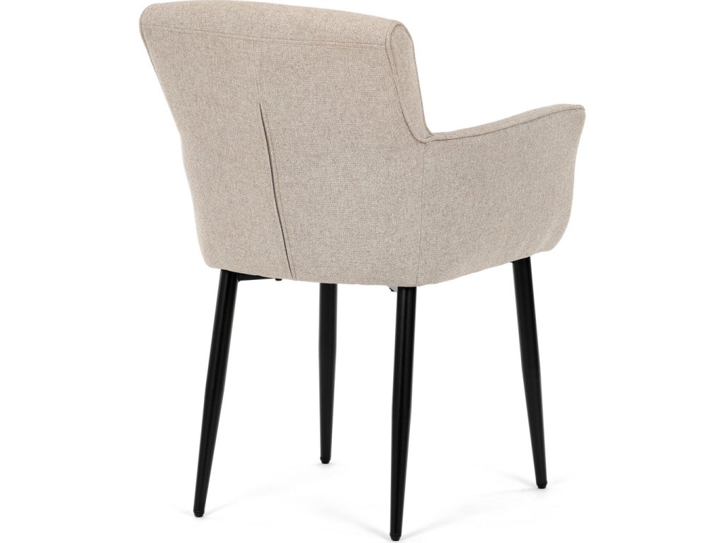 Moderní jídelní židle značky Autronic nabízí elegantní vzhled a vysoký komfort. Béžové čalounění z látky, která se snadno čistí, je ideální pro každodenní používání a zajišťuje praktickou údržbu. Pohodlné područky a měkká PU pěna ve výplni poskytují příjemné sezení. Stabilní konstrukce s černými kovovými nohami působí stylově a zajišťuje pevnost. Tato židle je skvělou volbou pro váš jídelní prostor, kde díky svému jednoduchému a funkčnímu designu perfektně zapadne do jakéhokoliv interiéru.Doplňkové parametry