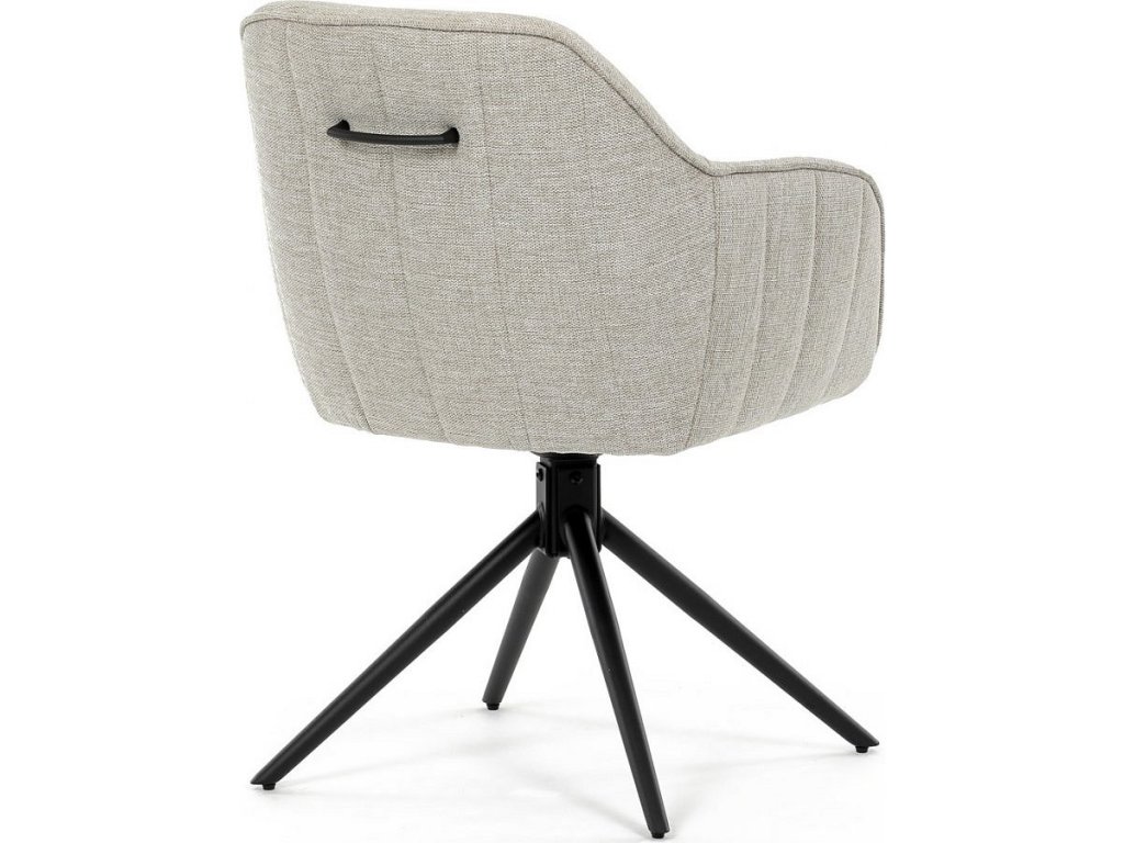 Moderní jídelní židle v krémové barvě s efektním prošitím zádové i přední části opěráku. Prošití je v brvě potahového materiálu. Zadní část opěráku je opatřena vkusným madlem pro snazší manipulaci. Čtyři kovové nohy v matném práškovém nástřiku vycházejí z centrálního bodu ve středu sedáku. Sedák je otočný o P90°+ L 90° s vratným mechanismem - funkce reset.Doplňkové parametry