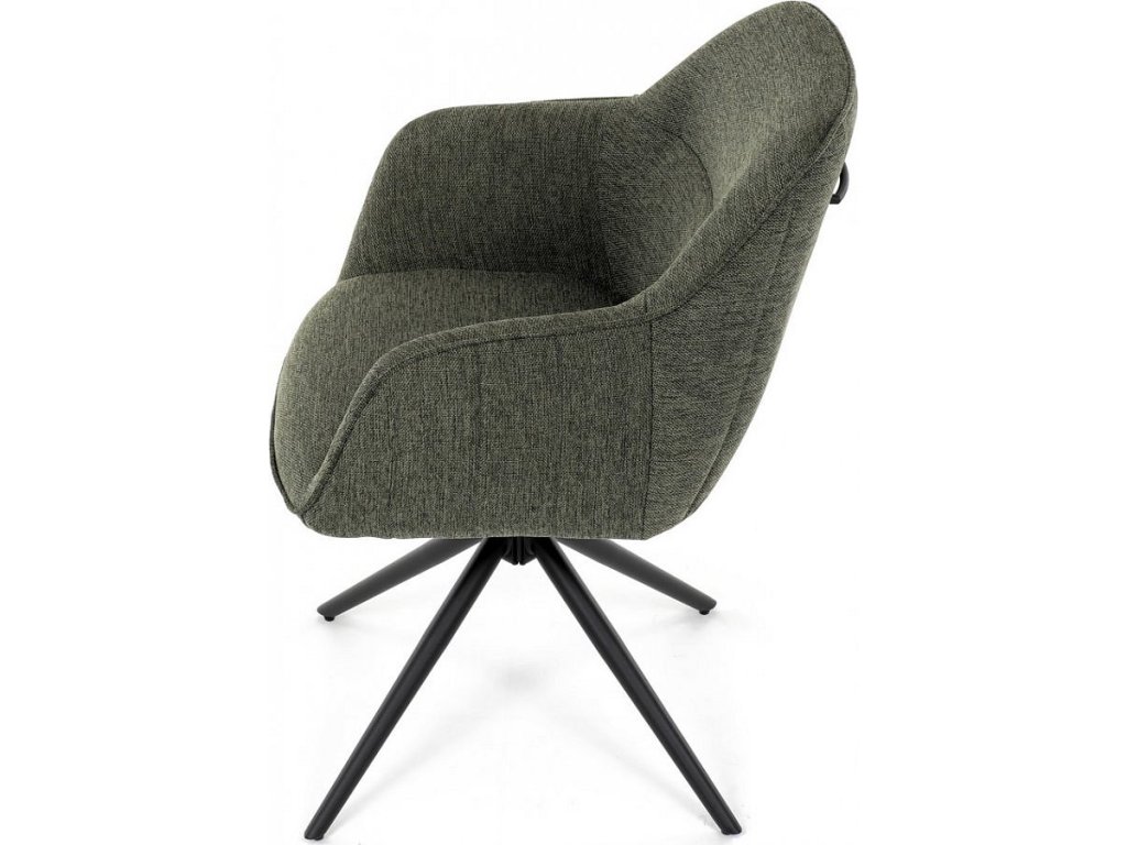 Moderní jídelní židle v zelené barvě s efektním prošitím zádové i přední části opěráku. Prošití je v brvě potahového materiálu. Zadní část opěráku je opatřena vkusným madlem pro snazší manipulaci. Čtyři kovové nohy v matném práškovém nástřiku vycházejí z centrálního bodu ve středu sedáku. Sedák je otočný o P90°+ L 90° s vratným mechanismem - funkce reset.Doplňkové parametry
