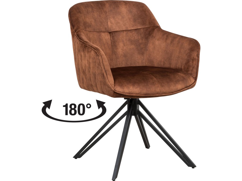 textilní potah, barevné provedení hnědá kovová konstrukce, barevné provedení černá otočná o 180 stupňů výška sedu 49 cm doporučená nosnost do 120 kg