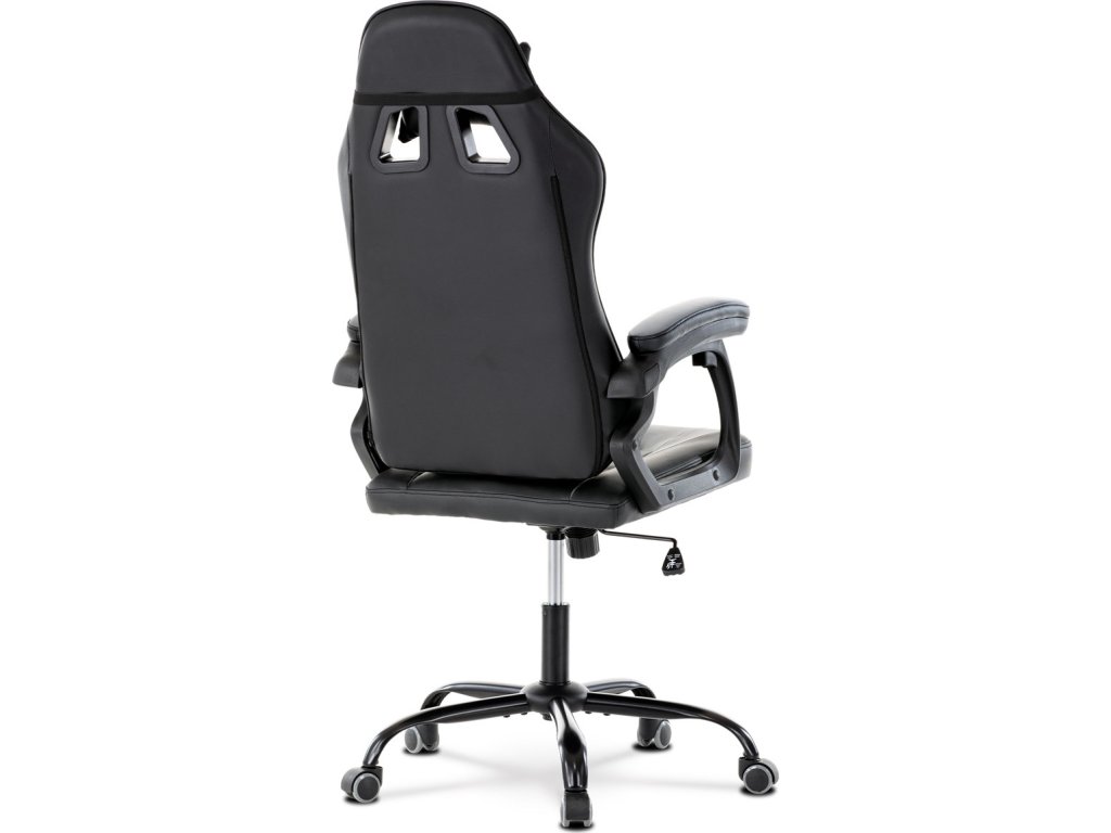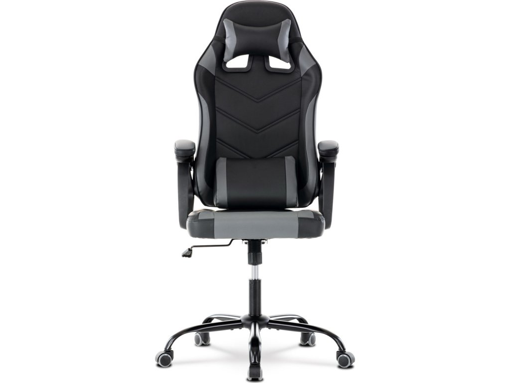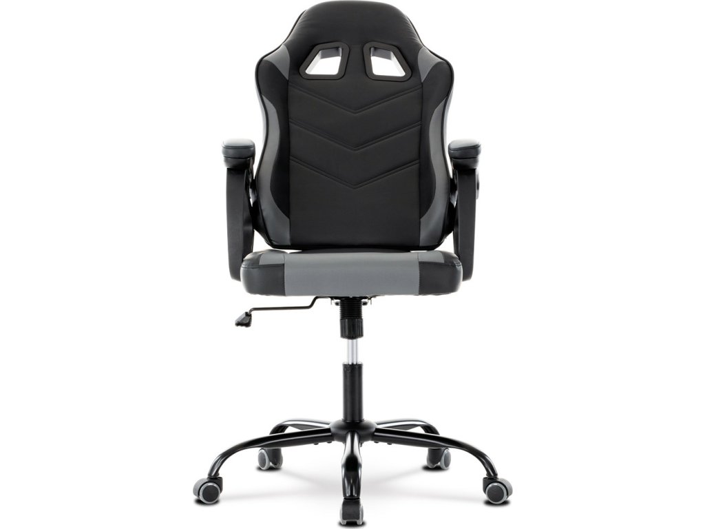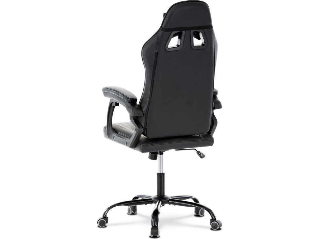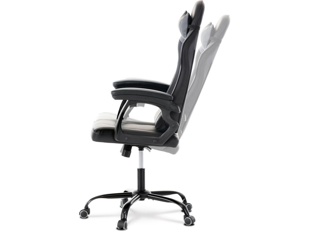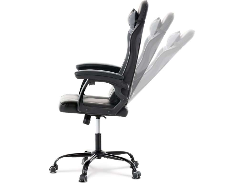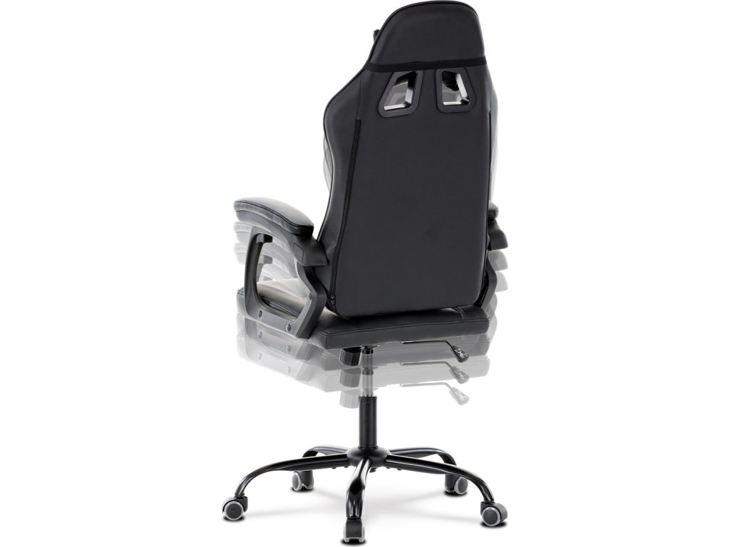 Herní křeslo, šedá a černá ekokůže, houpací mech., opěrák 135°