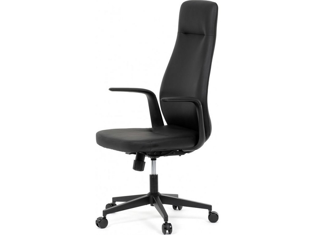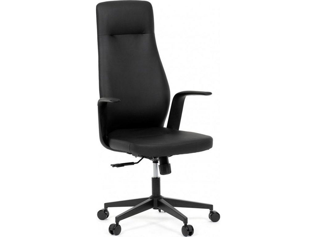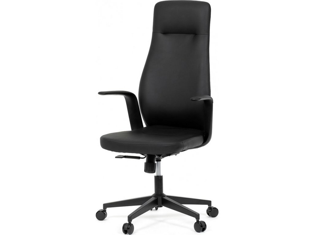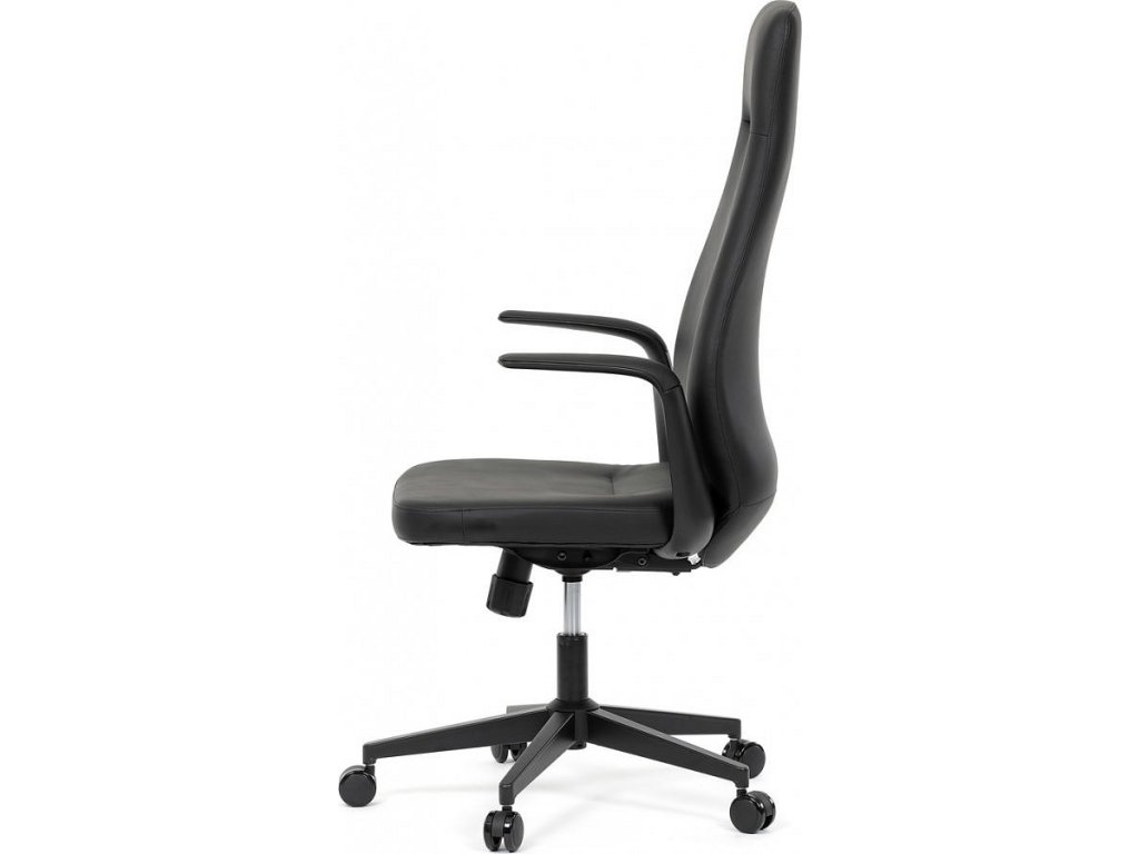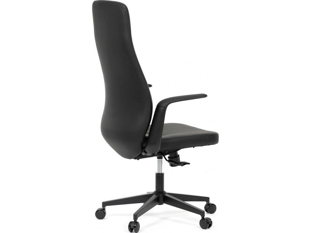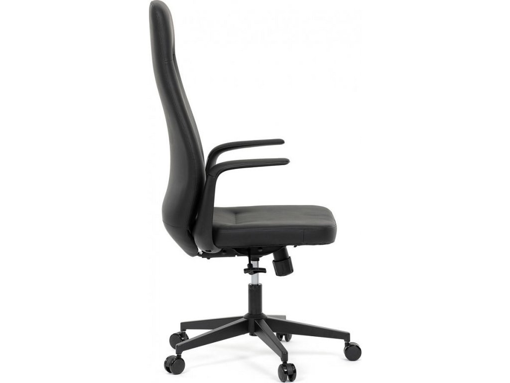 Kancelářské křeslo, černá ekokůže, houpací mechanismus s aretací ve 3 polohách, kovový kříž, kolečka pro tvrdé povrchy