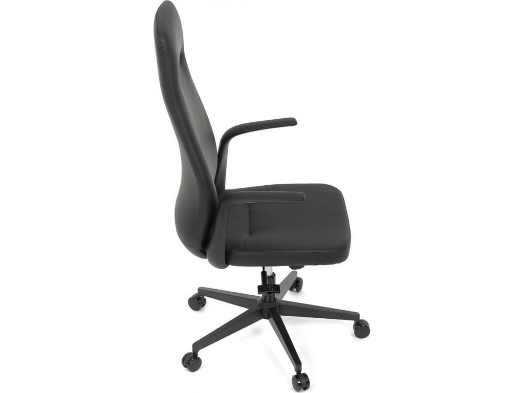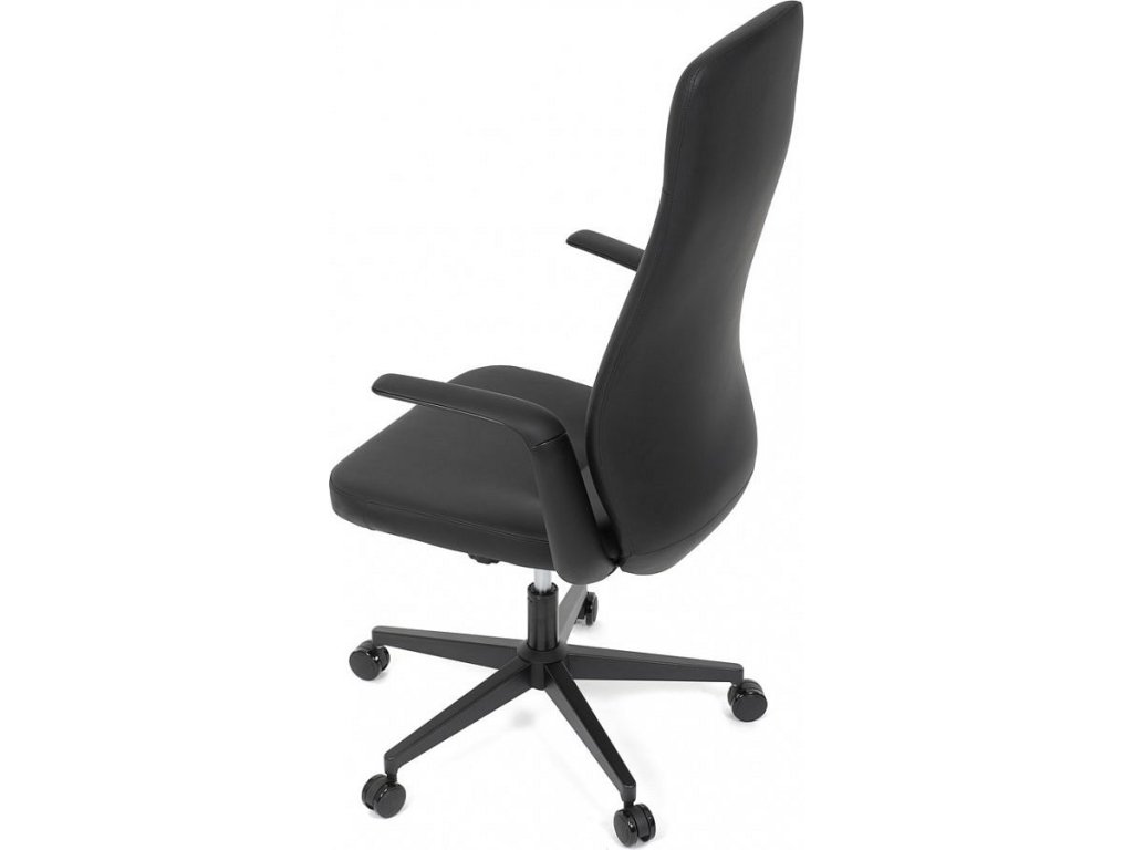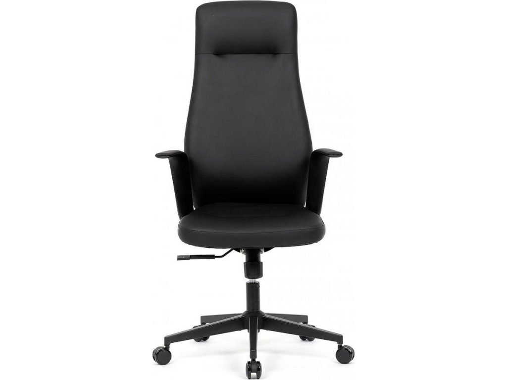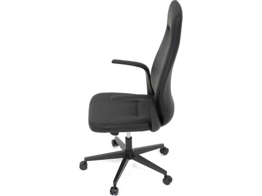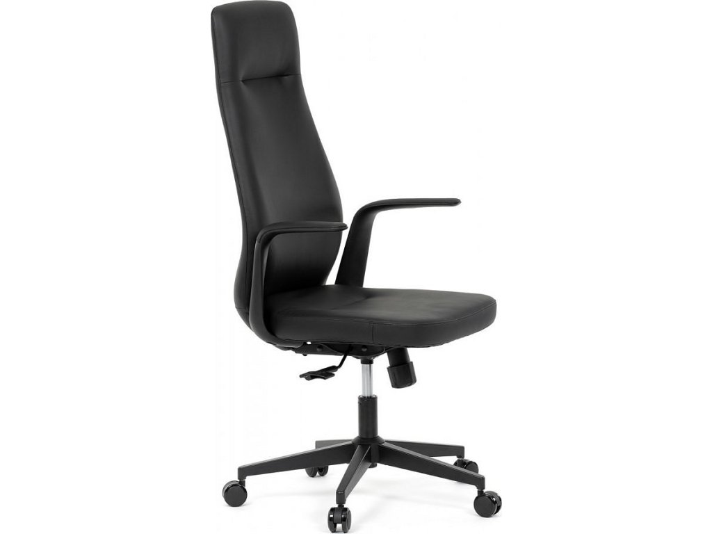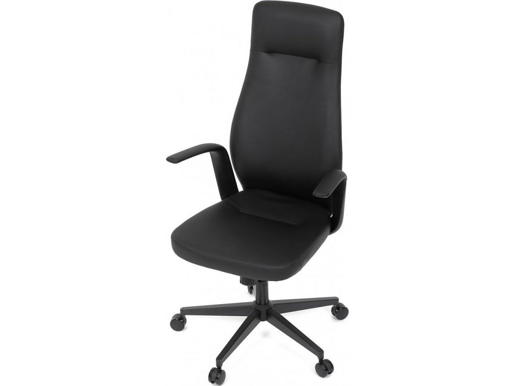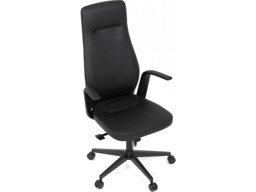 Kancelářské křeslo, černá ekokůže, houpací mechanismus s aretací ve 3 polohách, kovový kříž, kolečka pro tvrdé povrchy