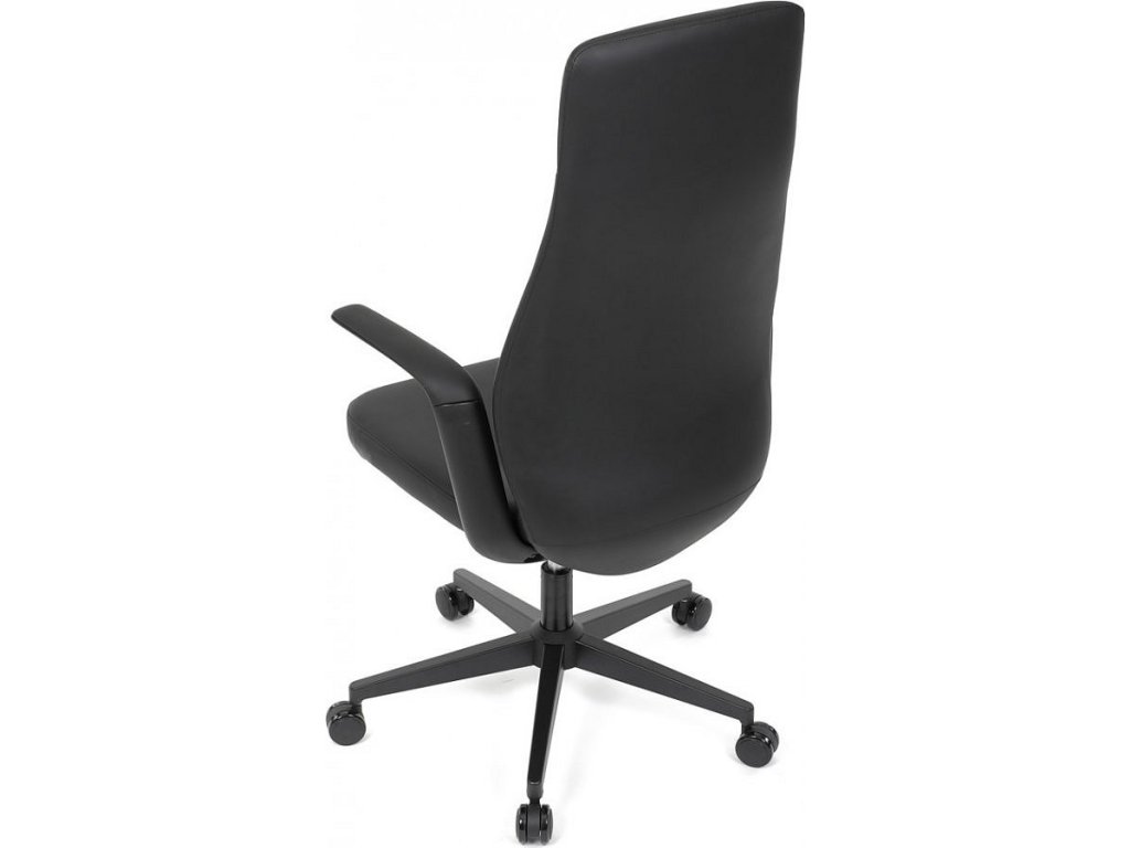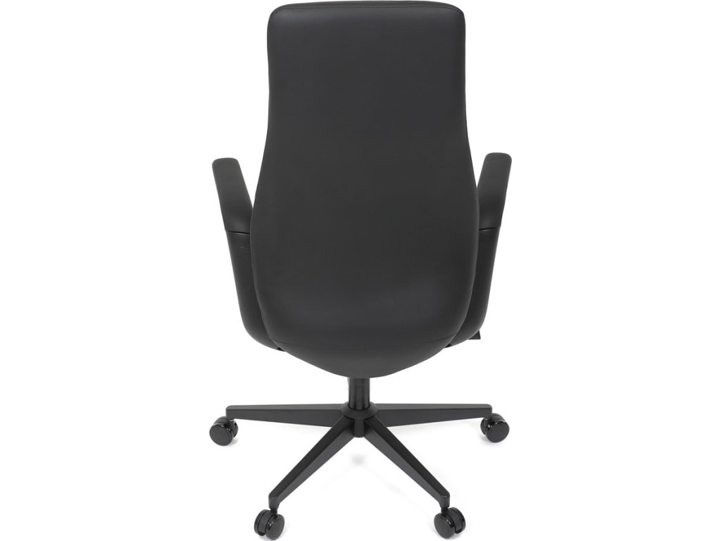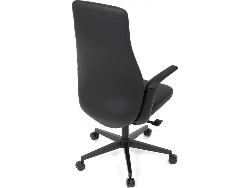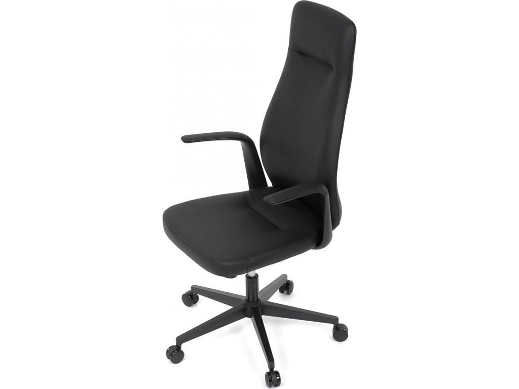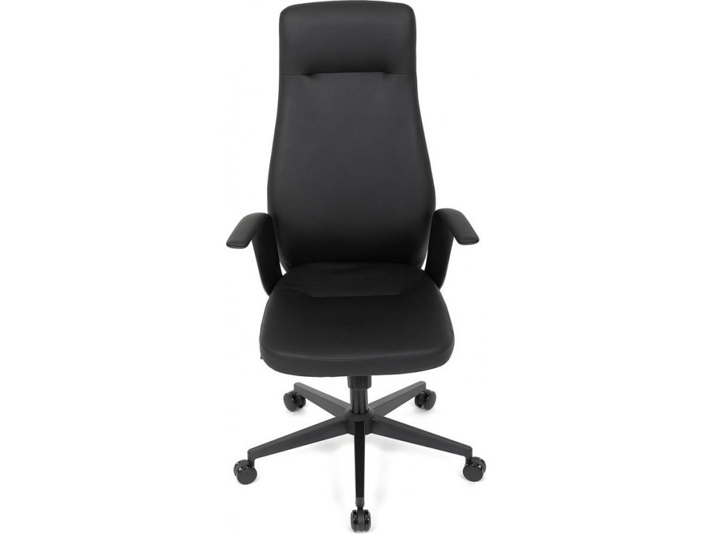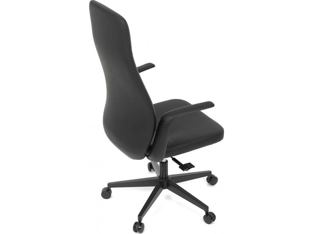 Kancelářské křeslo, černá ekokůže, houpací mechanismus s aretací ve 3 polohách, kovový kříž, kolečka pro tvrdé povrchy