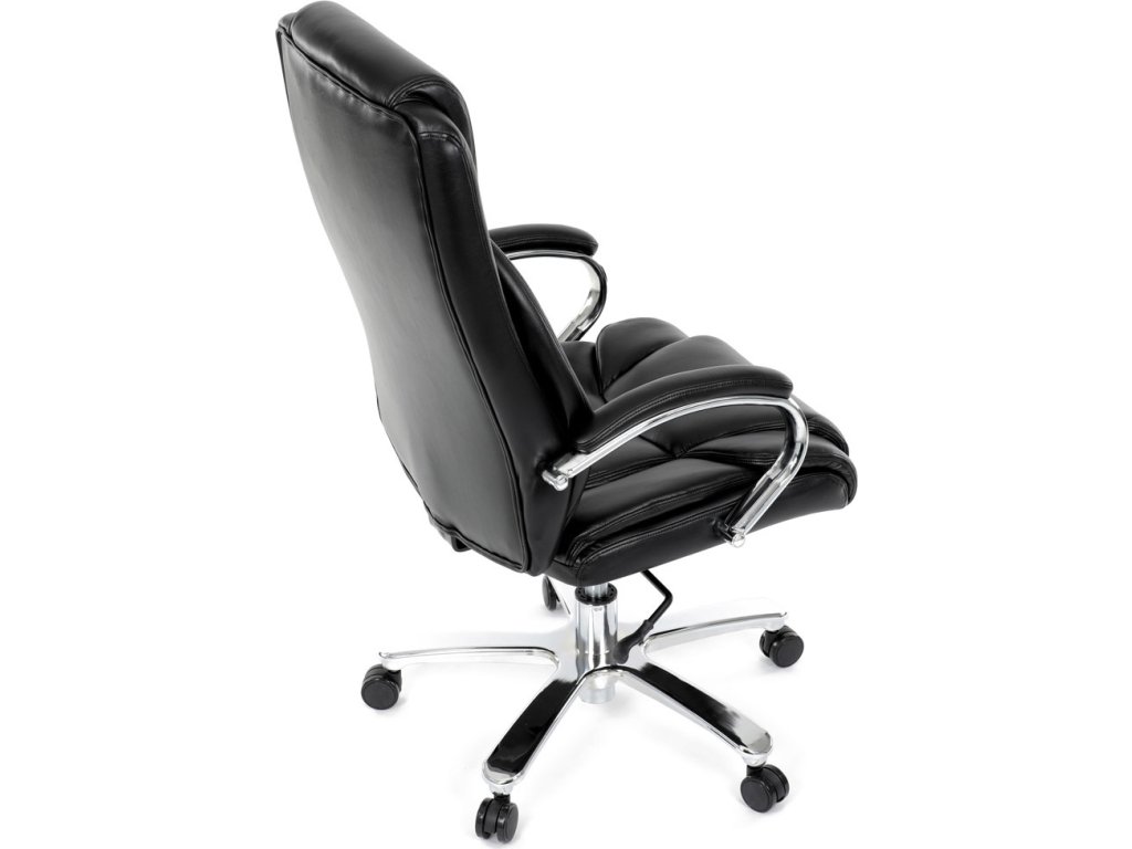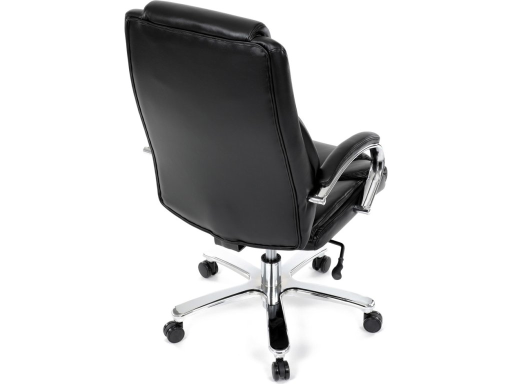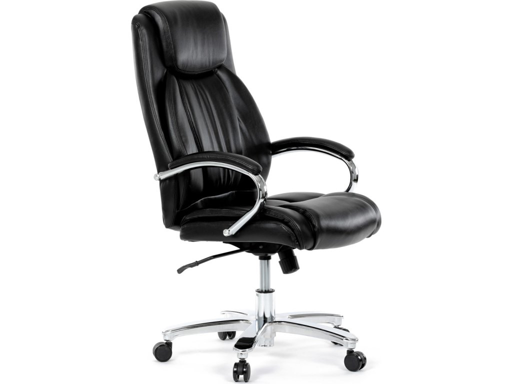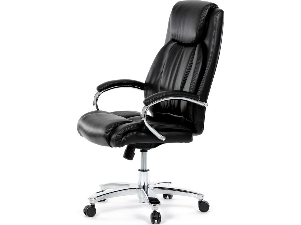 Křeslo kancelářské, černá ekokůže, chromový kříž, houpací mechanismus, nosnost 150kg