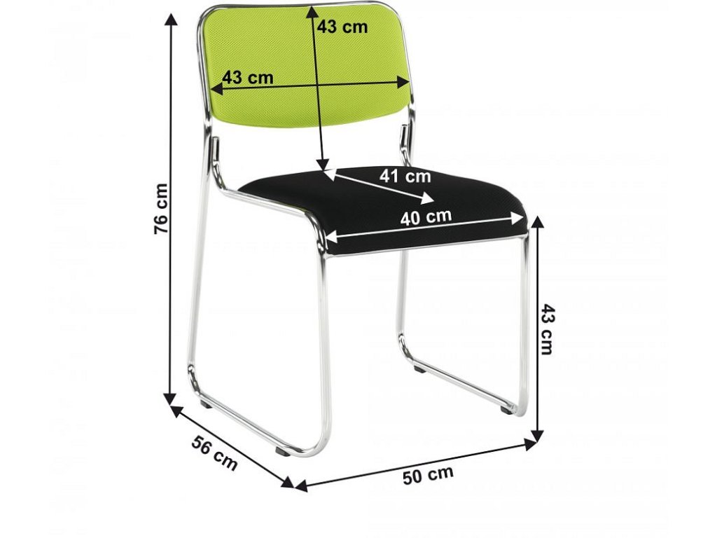 Barva: zelená / černá / chrom Materiál: síťovina / kov Oděruodolnost textilie podle testu Martindale: 90 000 oděrek Rozměry (ŠxHxV): 50x56x76 cm Výška sedu: 43 cm Hloubka sedu: 41 cm Šířka sedu: 40 cm Výška zádové opěrky: 34 cm Šířka zádové opěrky: 43 cm Nosnost: 110 kg stohovatelná Dodávané v monte.