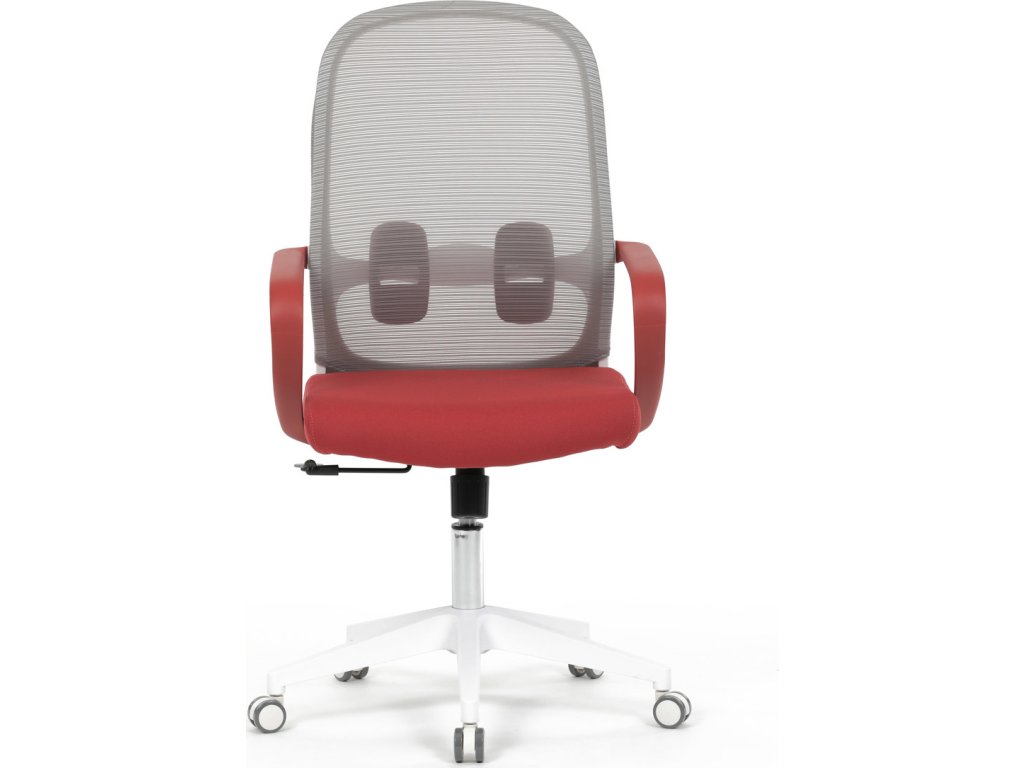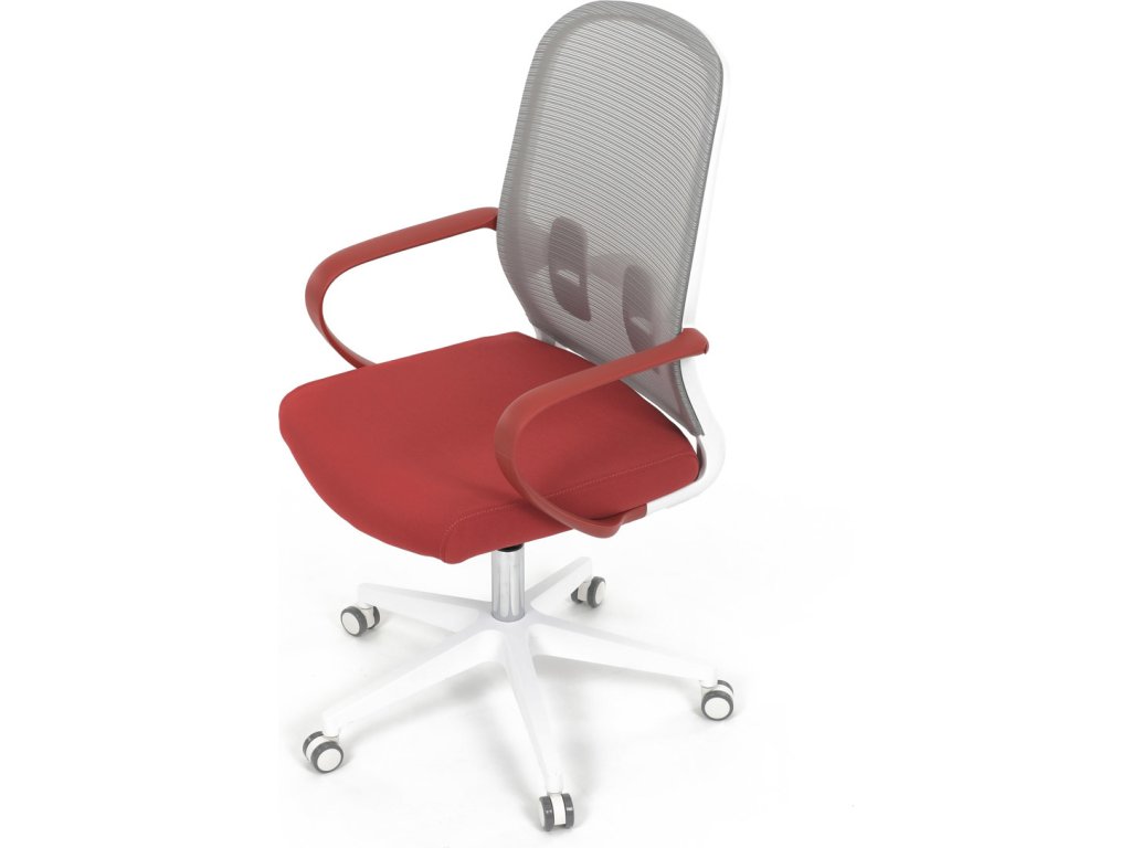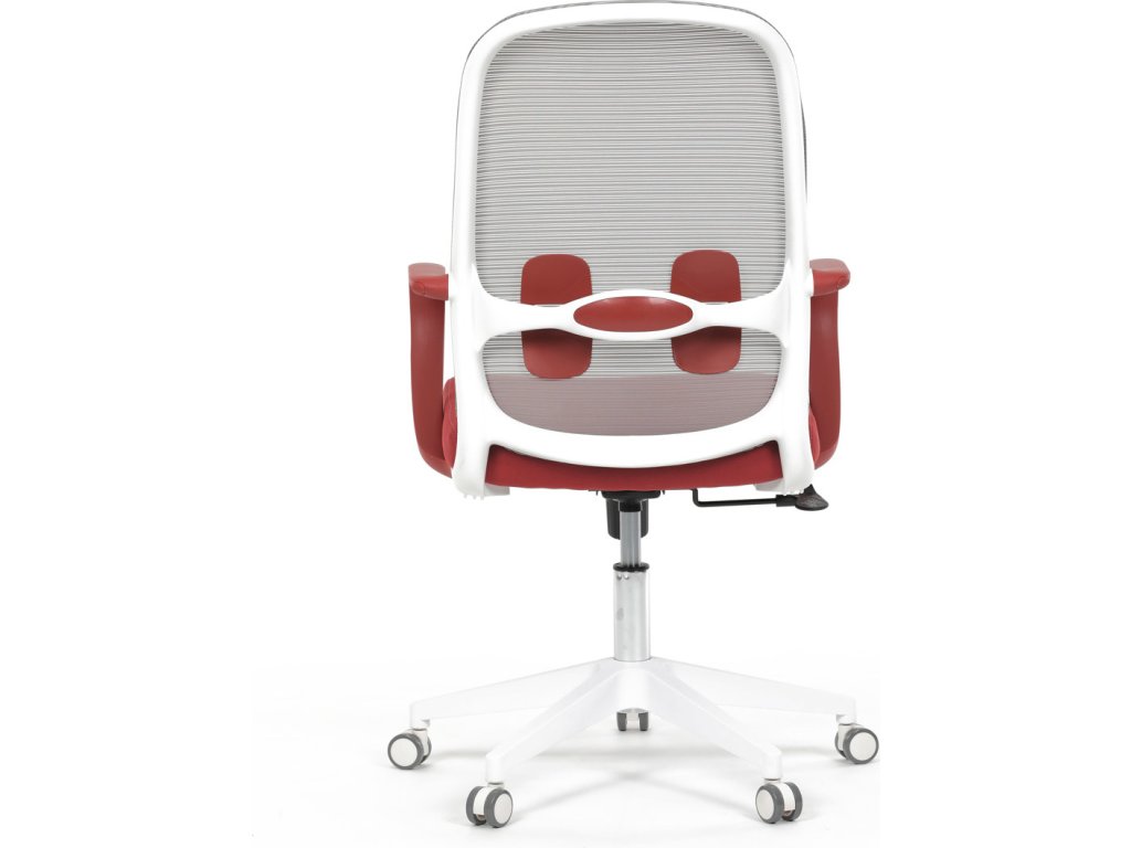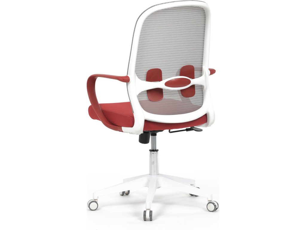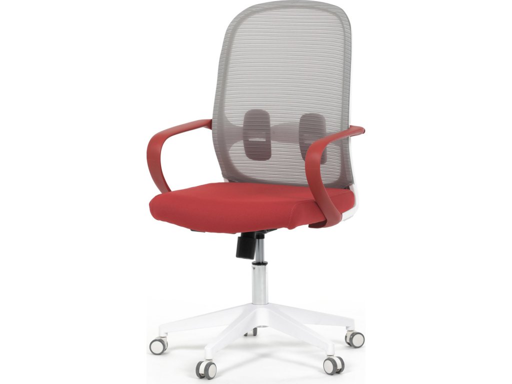 Židle kancelářská, bílý plast, šedý MESH a červená látka, plastový kříž, houpací mechanismus.