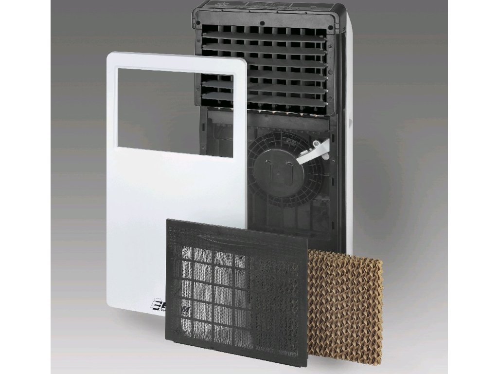 alternativou. Ochlazovač vzduchu pracuje na principu profukování vzduchu přes vodní filtry, kde se vzduch nasytí vodní párou a dojde k ochlazení vzduchu.