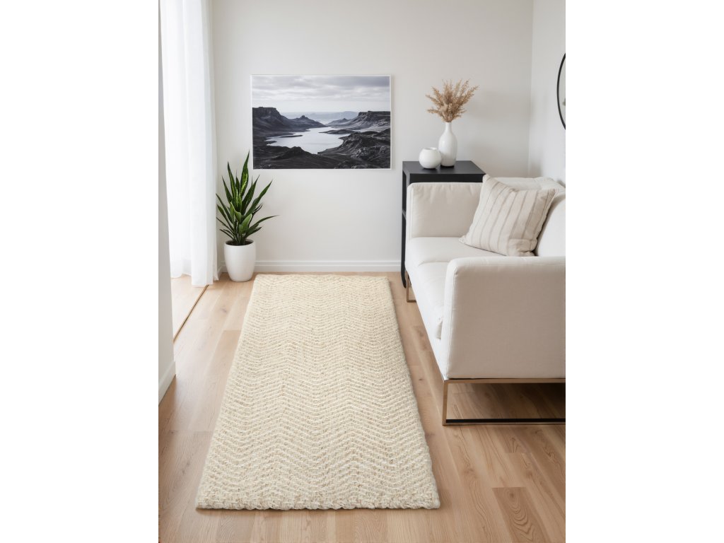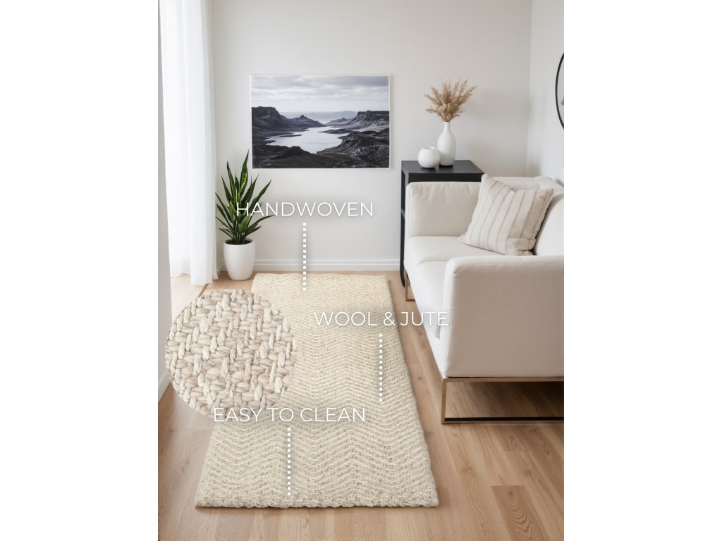 Koberce Majoli od značky Elle Decoration vnášejí do interiéru přírodní kouzlo a skandinávský styl. Jsou ručně tkané z kvalitní vlny a juty a díky svému nadčasovému designu se snadno přizpůsobí jakémukoliv stylu bydlení – dnes i v budoucnu. Díky vysokému vlasu o tloušťce 10 mm působí mimořádně měkce a příjemně na dotek. Elegantní vzor rybí kosti v přírodně bílé barvě dokonale propojuje klasickou eleganci s přirozenou odolností – příroda ve své nejstylovější podobě. Jsou ideální volbou pro každého, kdo hledá útulné a zároveň udržitelné řešení do svého domova. Koberce Majoli dokážou proměnit každý prostor v opravdový domov.ELLE Decoration