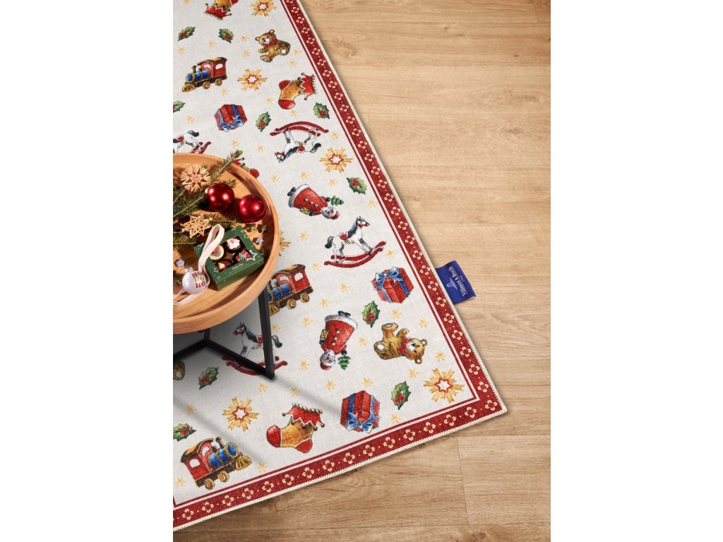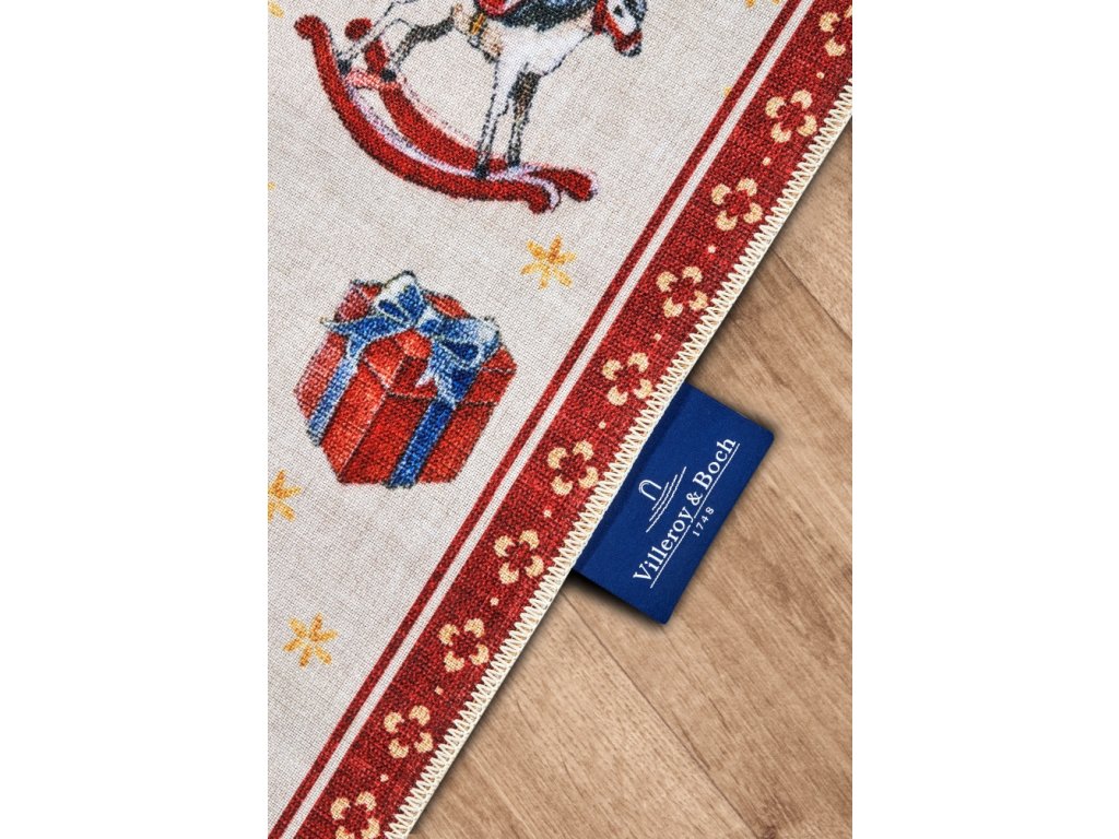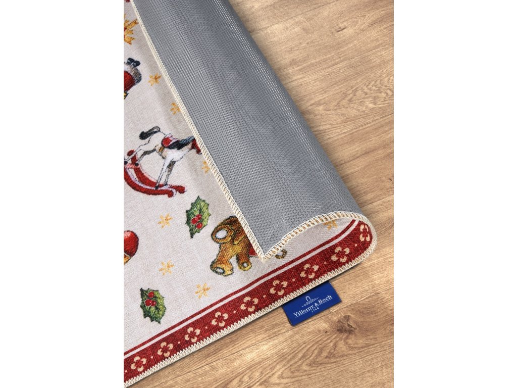 Řada koberců Villeroy & Boch Toy's Delight přináší do interiérů kouzlo Vánoc s nádechem nostalgie. Tyto koberce jsou zdobeny tradičními vánočními motivy, které vnesou do každého prostoru slavnostní atmosféru. Vyrábějí se z vysoce kvalitního polyesteru, díky čemuž jsou nejen odolné, ale i příjemné na dotek. Jejich povrch nezdobí klasický vlas, ale potisk, což jim dodává moderní a praktický vzhled s velmi nízkým profilem. Praktickou vlastností těchto koberců je protiskluzová rubová strana, která zajišťuje, že lépe drží na svém místě, a to i na hladkých površích. Jsou také ideální pro domácnosti s robotickými vysavači a vhodné pro vytápěné podlahy. Díky své nízké výšce po nich mohou snadno jezdit i kolečkové židle, což z nich činí skvělou volbu pro pracovní prostory. Okraje koberců jsou po celém obvodu pečlivě obšité, což zvyšuje jejich trvanlivost a dodává jim elegantní vzhled. V neposlední řadě mají certifikát Oeko-Tex, který garantuje, že neobsahují žádné škodlivé látky.Villeroy & Boch