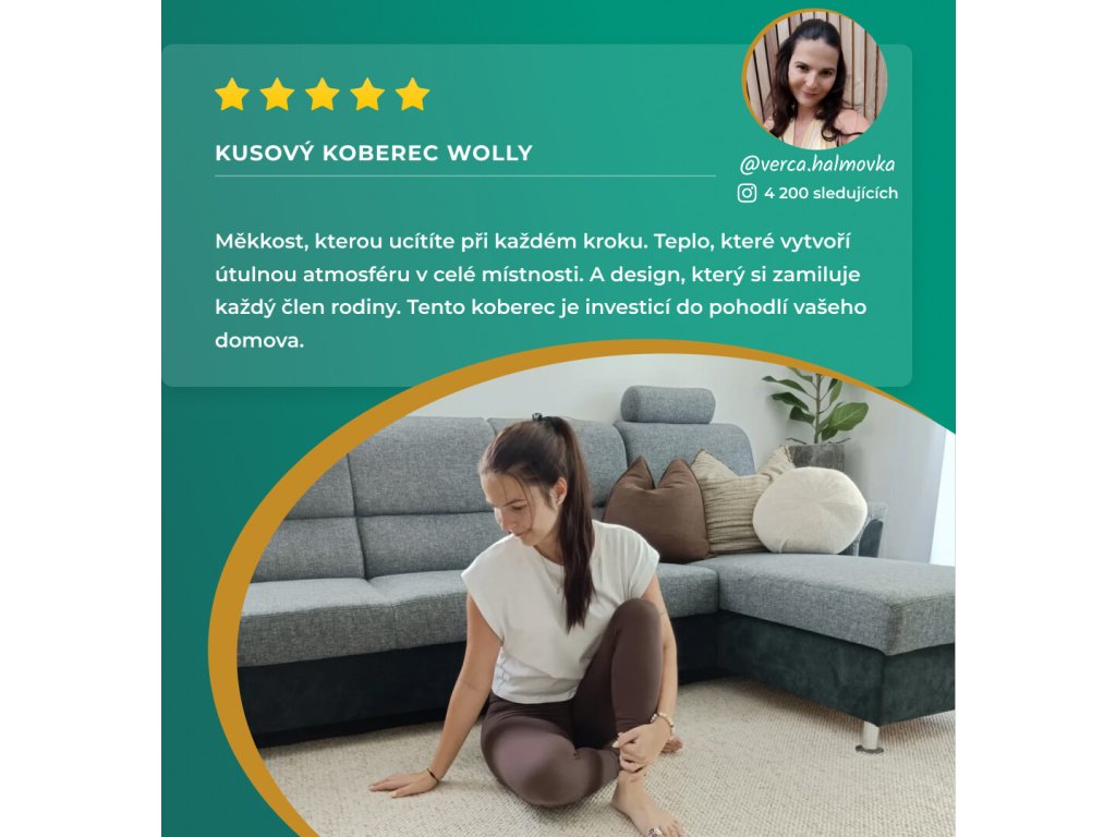 Koberec Wolly 102840 je vyroben ze syntetického materiálu se vzhledem vlny. Má perfektní vlastnosti jako je pevnost, pružnost, odolnost. Je velice jemný na dotek, má 12 mm dlouhý vlas. U tohoto koberce oceníte jednoduché barevné provedení, které zkombinujete s každým interiérem. Podívejte se na ekvivalentní koberce Casablanca v metrážové verzi.BT Carpet - Hanse Home koberce