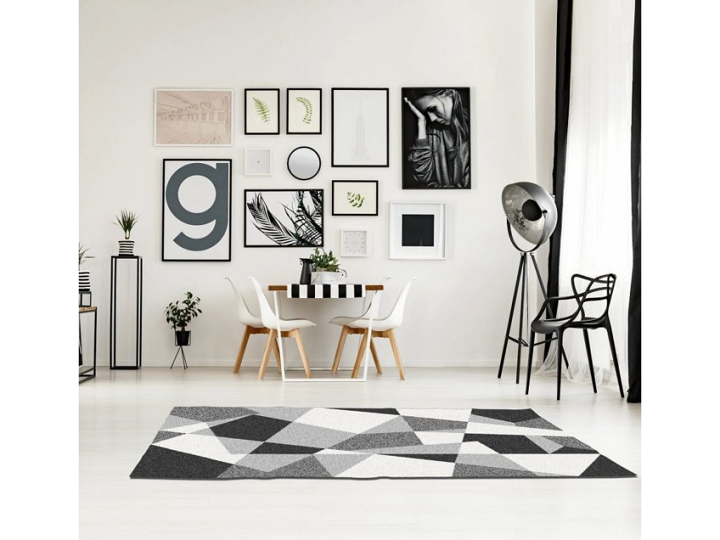 Materiál: 100% polypropylen Barva: černá / šedá / bílá Vzor: geometricky Rozměry (ŠxD): 100x150 cm Výška vlasu: 0,6 cm Gramáž: 1300g / m2 Tloušťka koberce: 0,8 cm Vhodný na podlahové topení Neperte v pračce Nebieľte nečistěte chemicky Nesušte v sušičce nežehlete Dodávané v monte