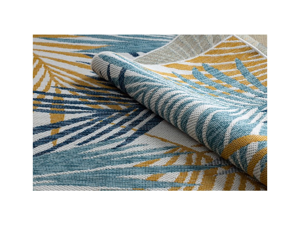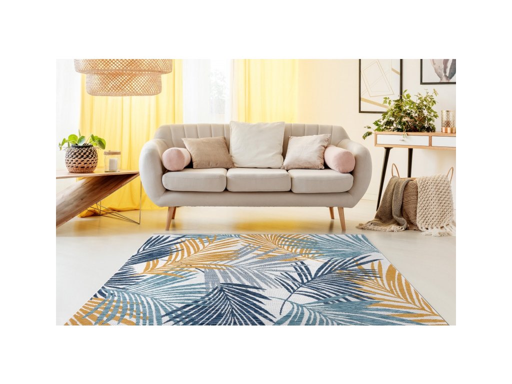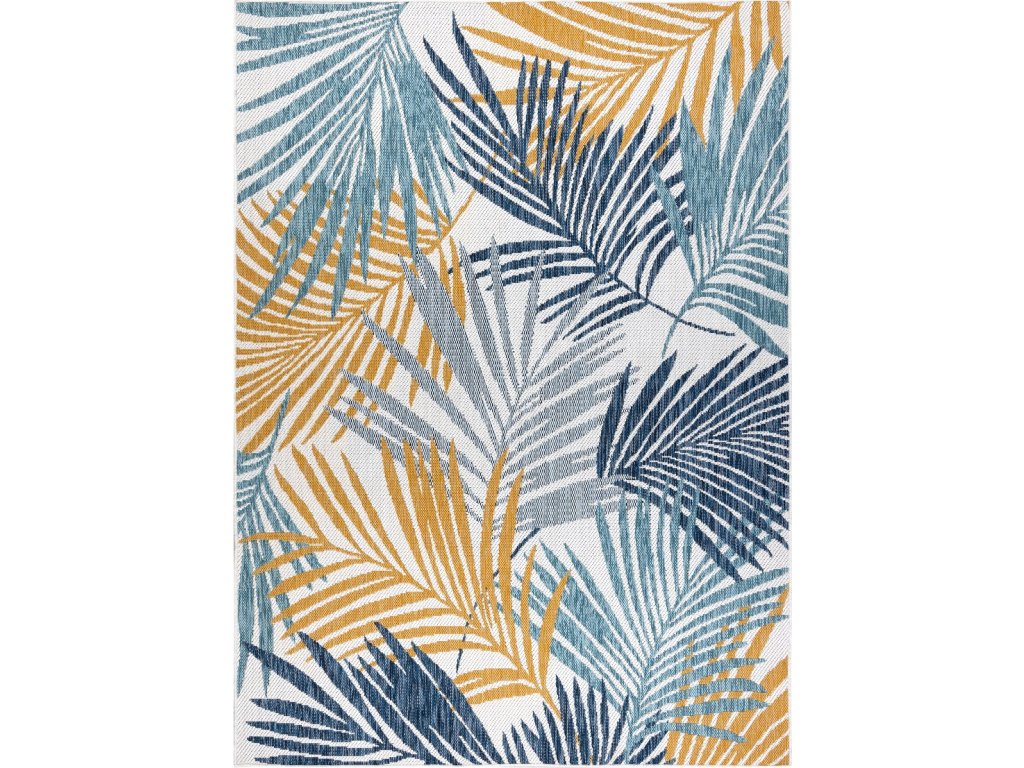Kusový koberec Cooper Sisal Palm leaves 22258 ecru/navy – na ven i na doma