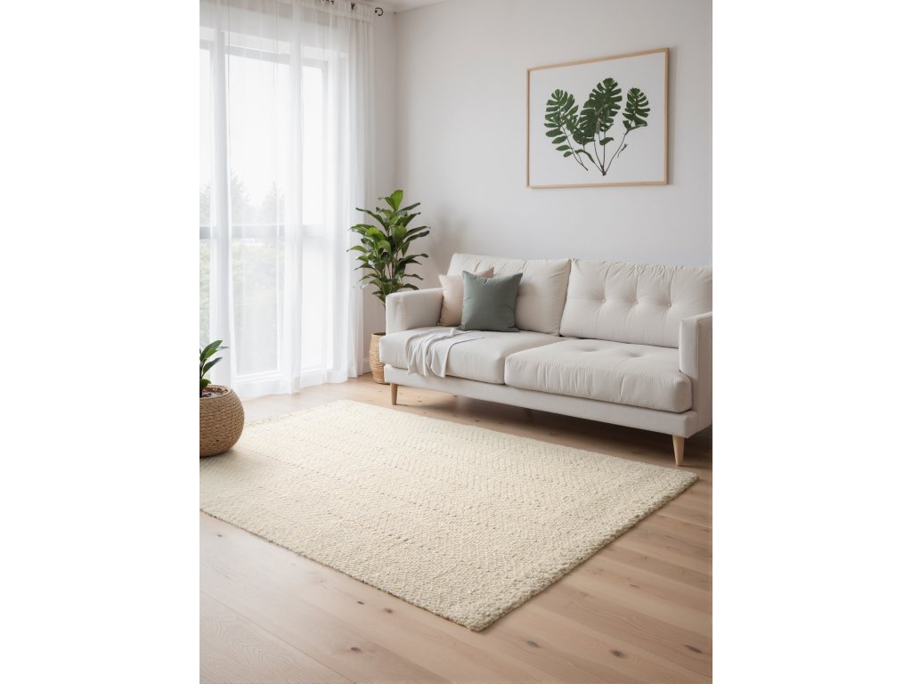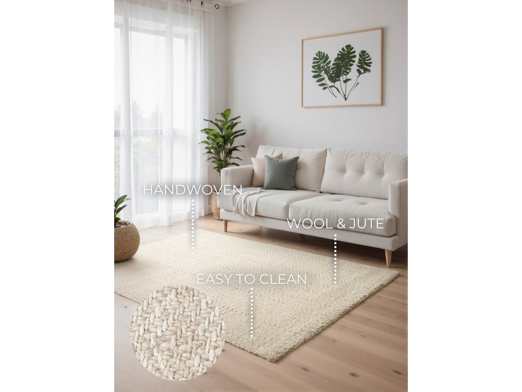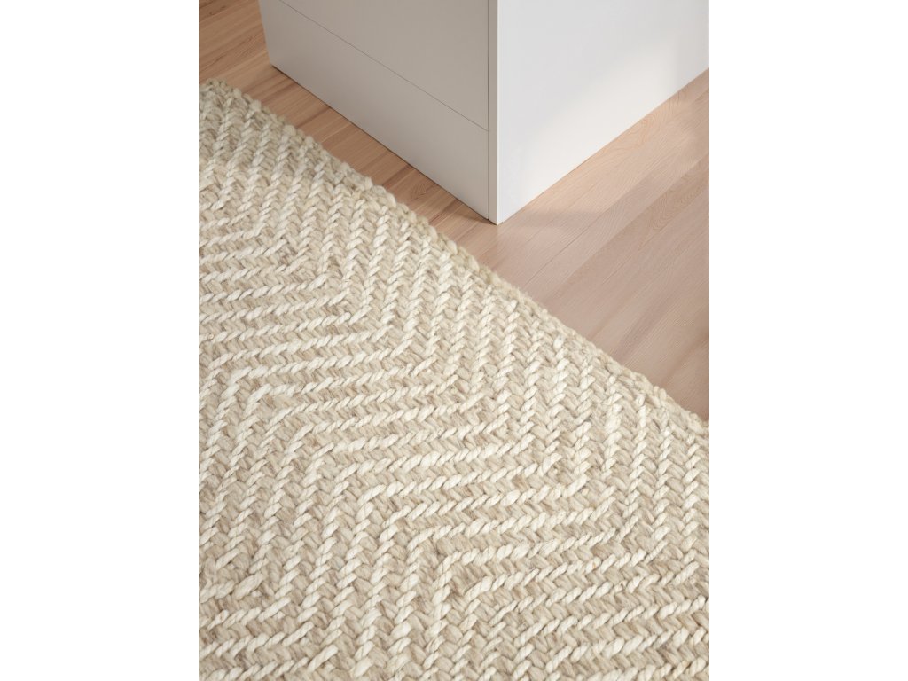 Koberce Majoli od značky Elle Decoration vnášejí do interiéru přírodní kouzlo a skandinávský styl. Jsou ručně tkané z kvalitní vlny a juty a díky svému nadčasovému designu se snadno přizpůsobí jakémukoliv stylu bydlení – dnes i v budoucnu. Díky vysokému vlasu o tloušťce 10 mm působí mimořádně měkce a příjemně na dotek. Elegantní vzor rybí kosti v přírodně bílé barvě dokonale propojuje klasickou eleganci s přirozenou odolností – příroda ve své nejstylovější podobě. Jsou ideální volbou pro každého, kdo hledá útulné a zároveň udržitelné řešení do svého domova. Koberce Majoli dokážou proměnit každý prostor v opravdový domov.ELLE Decoration