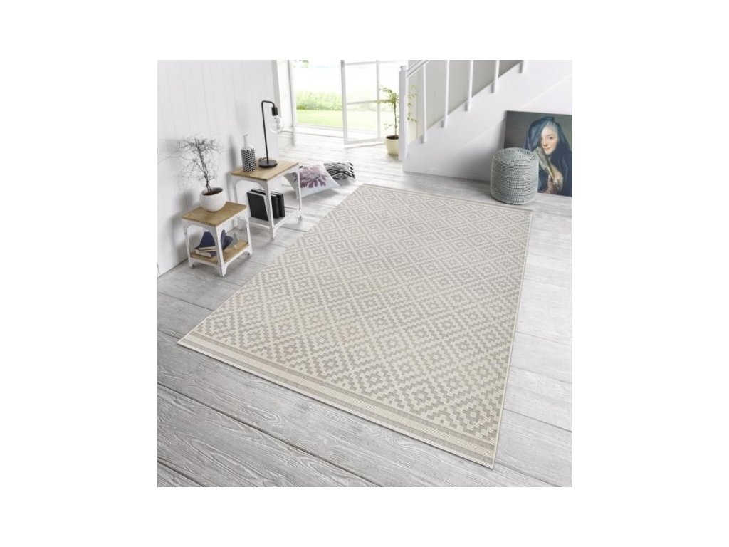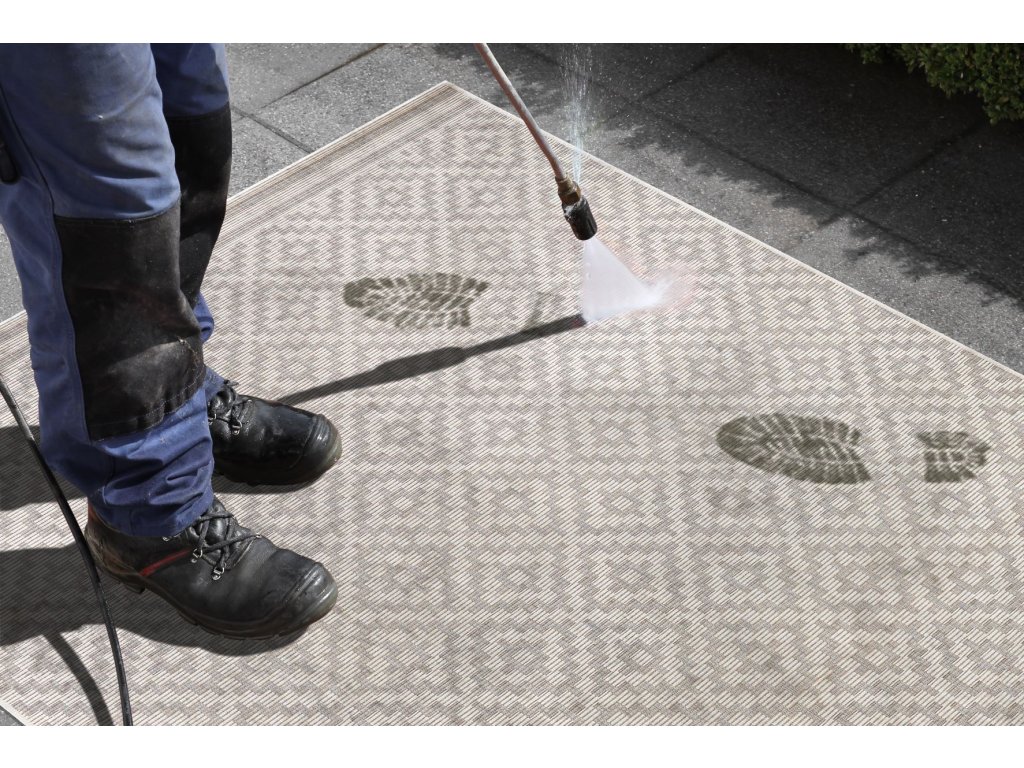 Koberec Meadow 102467 je vyroben ze 100% polypropylenu. Jedná se o nenáročný outdoorový koberec, který má jednoduché barvy a zajímavý vzor. Koberec velmi rychle schne, je velice odolný a houževnatý.