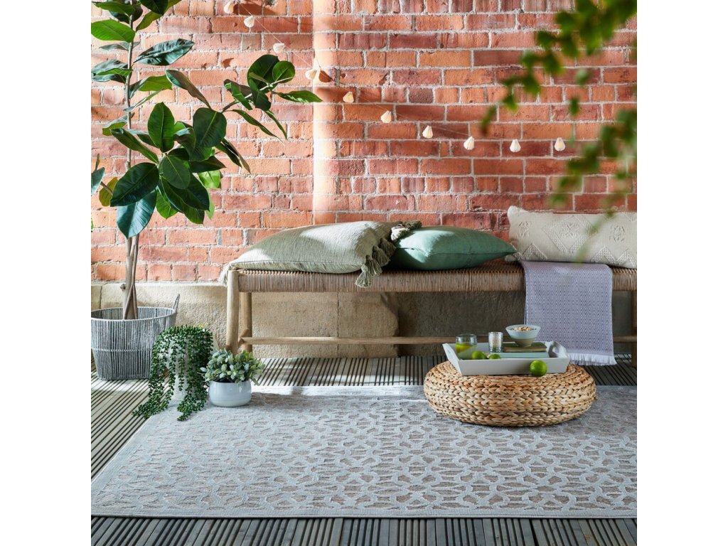 Řada PIATTO je ideální do interiéru i exteriéru a zaujme Vás nápaditými geometrickými vzory i sametovou hebkostí. Koberce jsou vyrobeny v Turecku z pevného polypropylenu, který zajišťuje vysokou odolnost. Můžete je proto bez obav položit i pod zahradní nábytek, a to i díky velmi nízkému vlasu. Rubová strana je opatřena latexem. Předností je i snadná údržba - stačí koberce opatrně vysát pomocí podlahového nebo kartáčového nástavce.Flair Rugs koberce