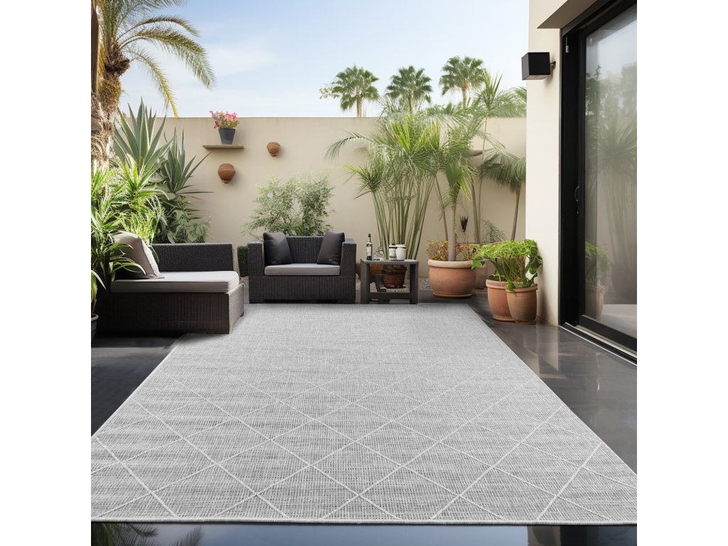 Koberce z kolekce Zagora od výrobce Ayyildiz Teppich jsou navrženy pro použití jak v interiéru, tak v exteriéru. Jsou vyrobeny ze 100% polypropylenu, což je materiál známý svou odolností vůči povětrnostním vlivům a UV záření, což zajišťuje jejich dlouhou životnost a stálobarevnost. Díky těmto vlastnostem jsou ideální pro umístění na terasách, balkonech či v zahradách. Design těchto koberců je často inspirován skandinávským stylem, s moderními vzory, jako jsou například geometrické tvary či rýhované motivy, které dodají prostoru svěží a stylový vzhled. Koberce mají nízký vlas, obvykle kolem 5 mm, což usnadňuje jejich údržbu a zvyšuje odolnost vůči opotřebení. Kolekce Zagora nabízí různé velikosti a barevné varianty, což umožňuje snadné sladění s různými typy interiérů a exteriérů. Díky svým vlastnostem jsou tyto koberce nejen praktické, ale také esteticky přitažlivé, což z nich činí skvělý doplněk pro váš domov či venkovní prostory. Je vhodný pro použití s robotickým vysavačem. Koberec je vhodný i pro použití na podlahové vytápění.Ayyildiz