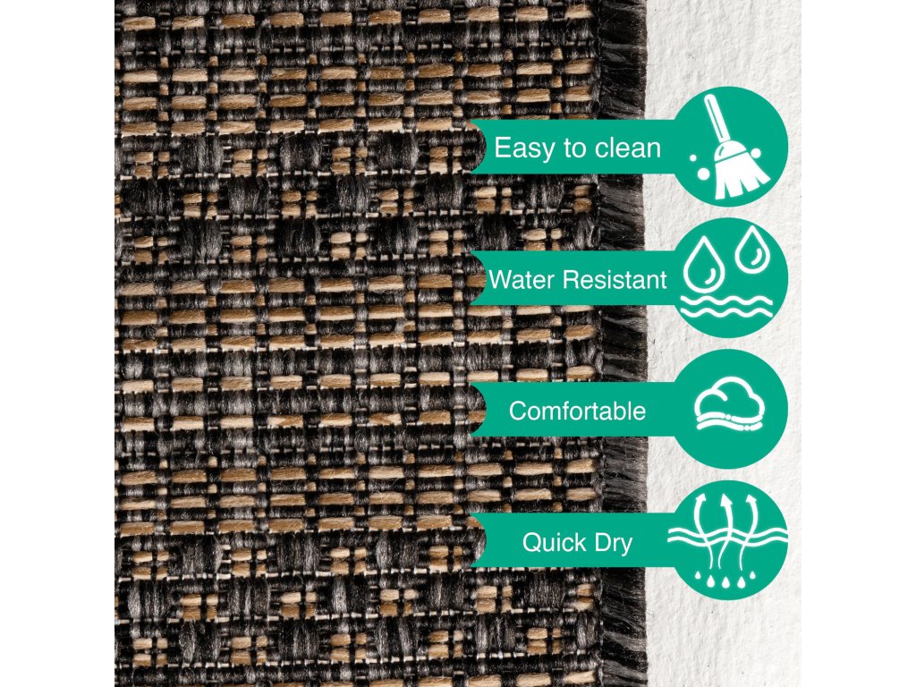Koberce z kolekce Zagora od výrobce Ayyildiz Teppich jsou navrženy pro použití jak v interiéru, tak v exteriéru. Jsou vyrobeny ze 100% polypropylenu, což je materiál známý svou odolností vůči povětrnostním vlivům a UV záření, což zajišťuje jejich dlouhou životnost a stálobarevnost. Díky těmto vlastnostem jsou ideální pro umístění na terasách, balkonech či v zahradách. Design těchto koberců je často inspirován skandinávským stylem, s moderními vzory, jako jsou například geometrické tvary či rýhované motivy, které dodají prostoru svěží a stylový vzhled. Koberce mají nízký vlas, obvykle kolem 5 mm, což usnadňuje jejich údržbu a zvyšuje odolnost vůči opotřebení. Kolekce Zagora nabízí různé velikosti a barevné varianty, což umožňuje snadné sladění s různými typy interiérů a exteriérů. Díky svým vlastnostem jsou tyto koberce nejen praktické, ale také esteticky přitažlivé, což z nich činí skvělý doplněk pro váš domov či venkovní prostory. Je vhodný pro použití s robotickým vysavačem. Koberec je vhodný i pro použití na podlahové vytápění.Ayyildiz