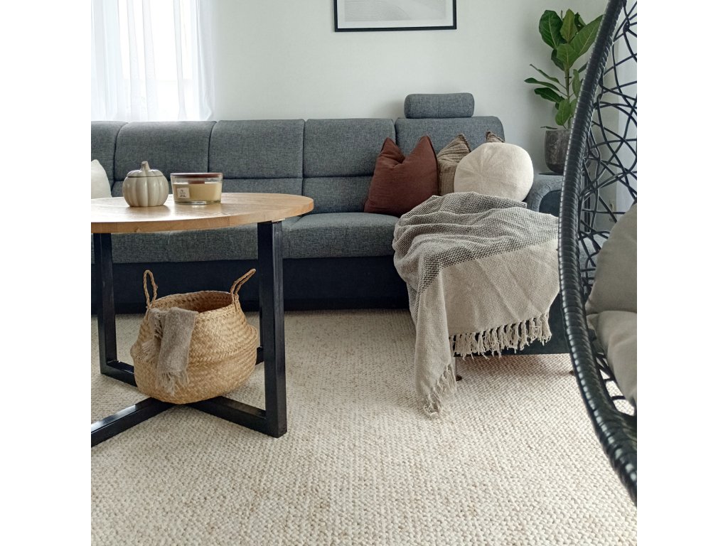 Koberec Wolly 102843 je velice příjemný koberec se vzhledem vlny. Vyroben je ze 100% polypropylenu. Vlákno mu dodává lehkost. Při doteku nebo při chůzi po koberci získáte pouze příjemné pocity. Skvěle tlumí hluk a zabrání pocitu chladu od podlahy. Podívejte se na ekvivalentní koberce Casablanca v metrážové verzi nebo pratelné a recyklovatelné bratrance Tundra.BT Carpet