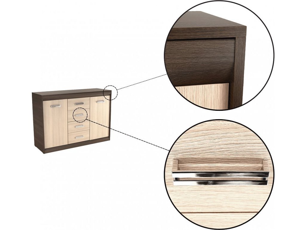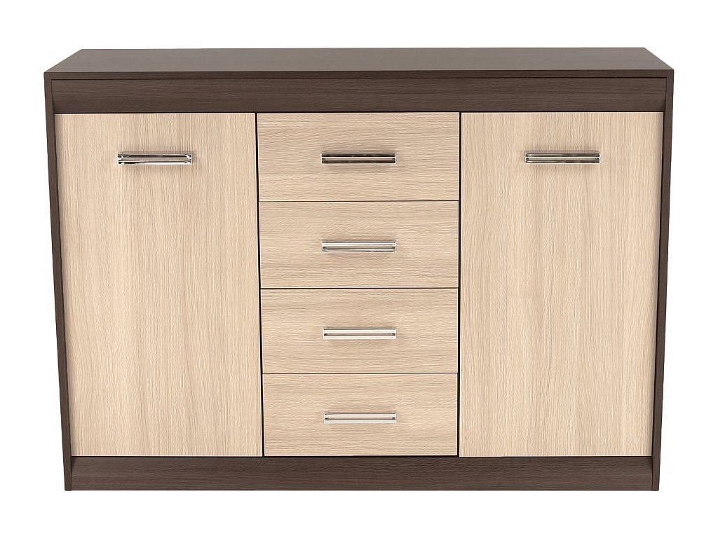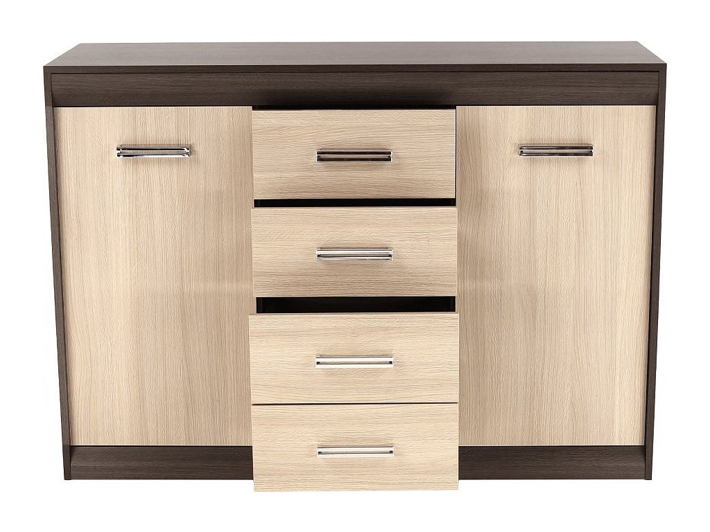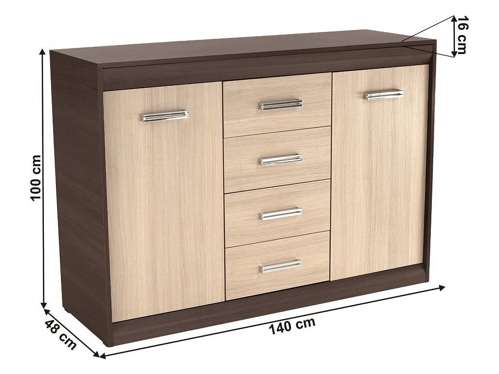 Komoda KORINA Materiál: DTD laminovaná Barva: dub tmavý / dub jasný Rozměry (ŠxHxV): 140x48x100 cm Tloušťka materiálu: 16 mm Dodávané v demontu.