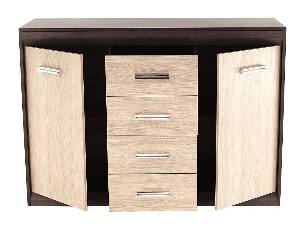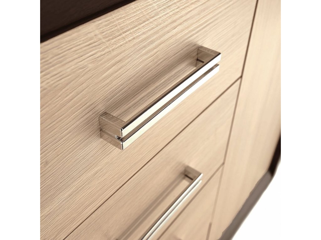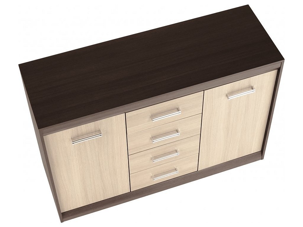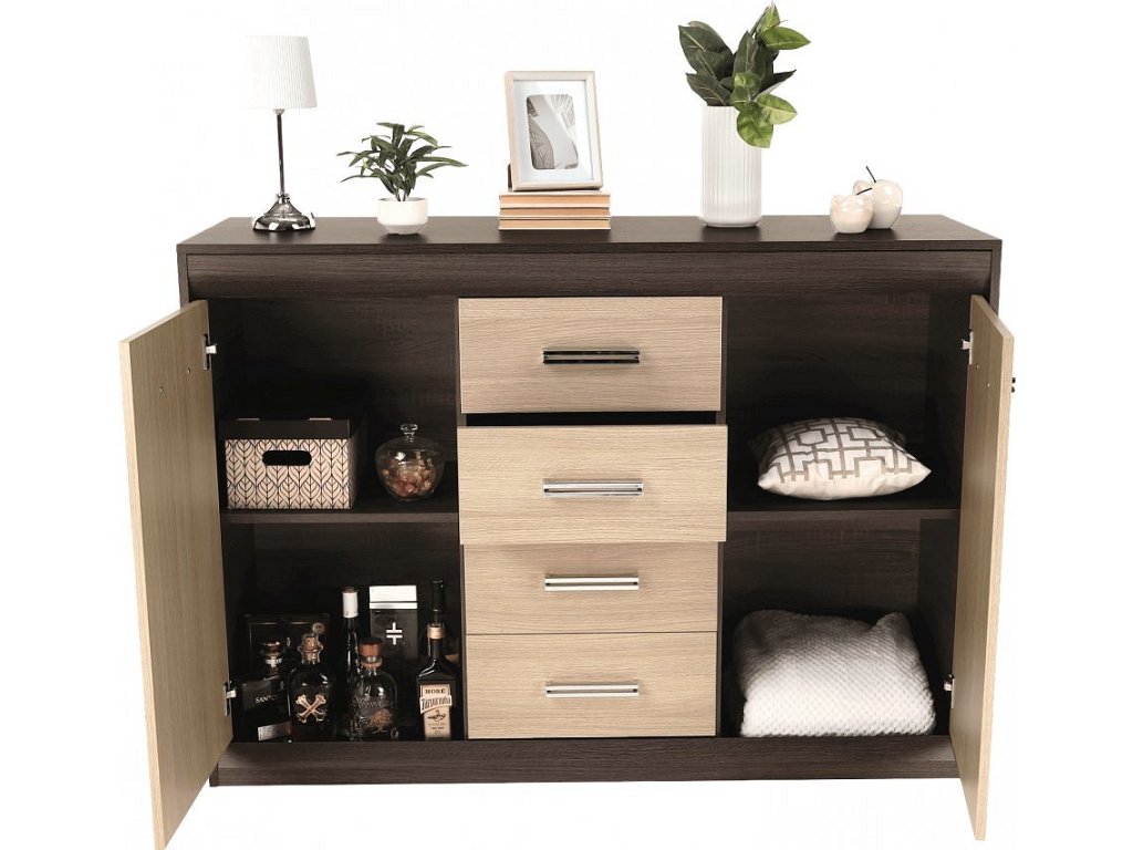 Komoda KORINA Materiál: DTD laminovaná Barva: dub tmavý / dub jasný Rozměry (ŠxHxV): 140x48x100 cm Tloušťka materiálu: 16 mm Dodávané v demontu.