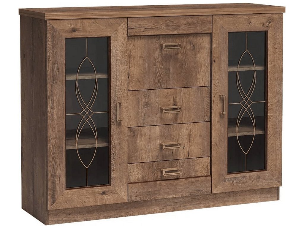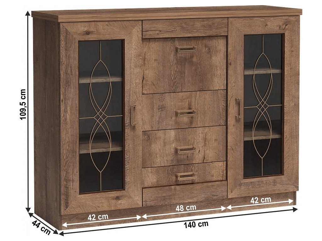 Komoda TEDY TYP T14 Materiál: DTD laminovaná / ABS hrany / MDF Barva: dub lefkas Rozměry (ŠxHxV): 140x44x110 cm Tloušťka materiálu: 32 mm Tloušťka materiálu zbývající části: 16 mm Dodávané v demontu.Na objednávku