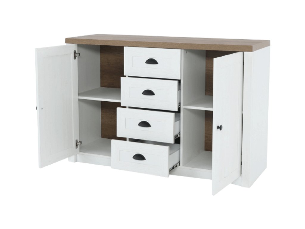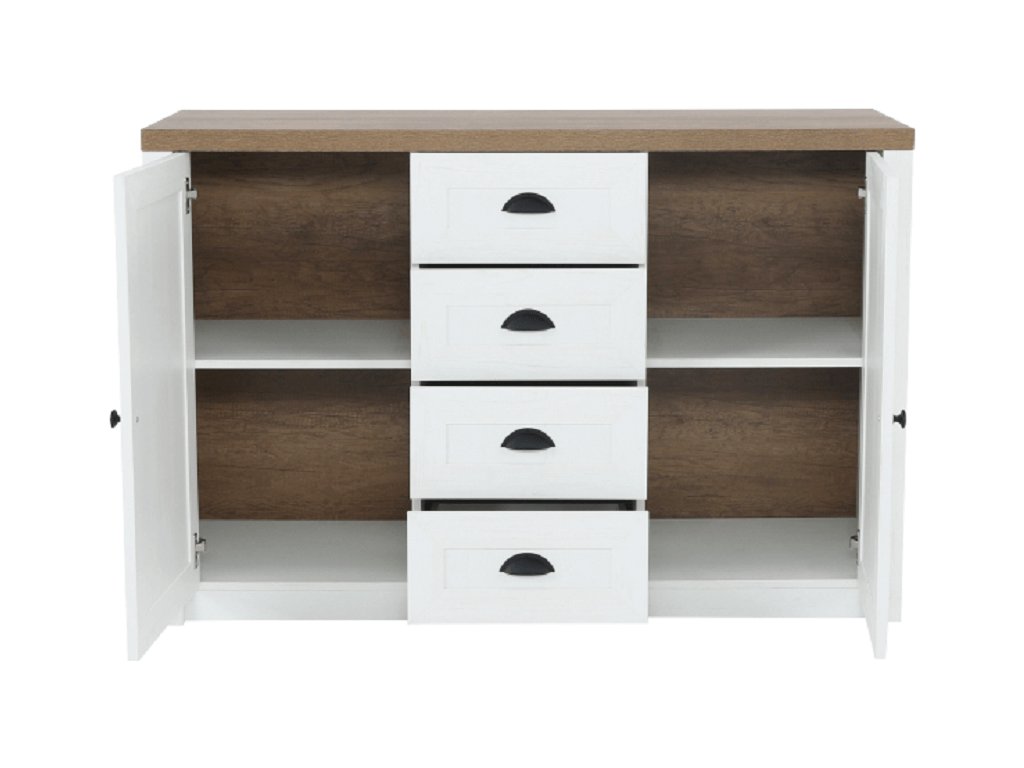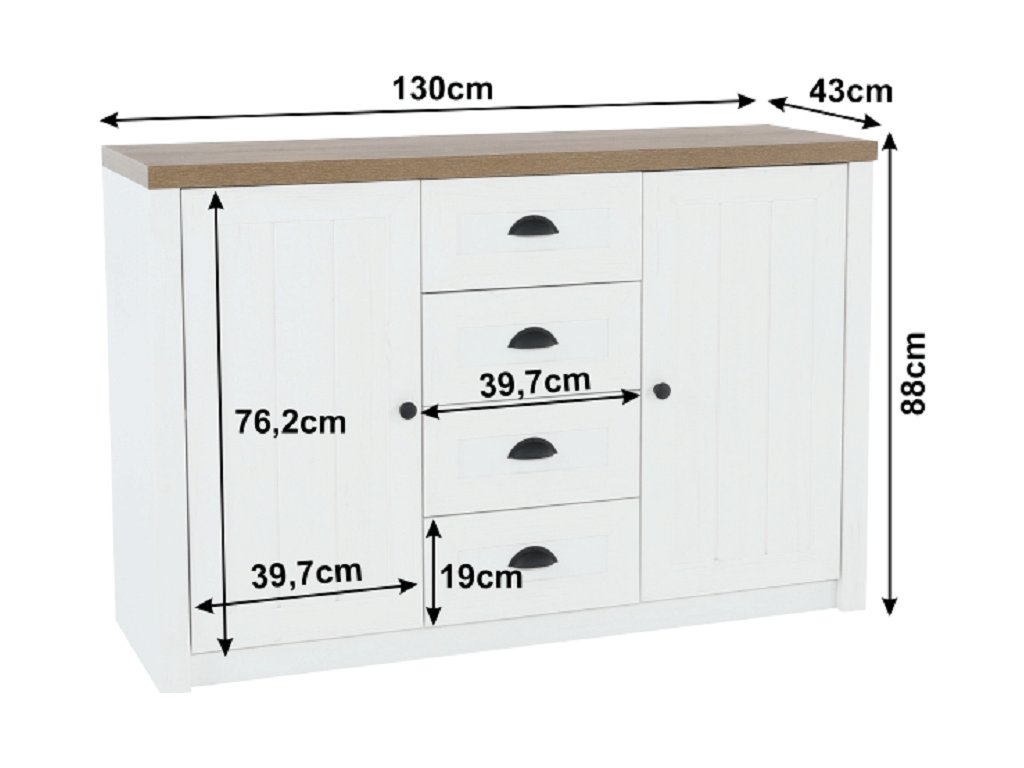 Komoda PROVANCE v barevném provedení sosna andersen / dub lefkas. Materiál laminovaná DTD. Rozměry (ŠxHxV: 130x43x88 cm Tloušťka materiálu korpus: 15 mm Tloušťka materiálu vrchní desky: 36 mm Dodávané v demontu.