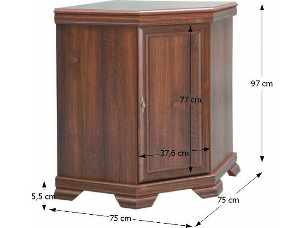 Rohová komoda KKN1 KORA. Materiál laminovaná DTD, MDF, kov Barevné provedení: samoa king. Rozměry (ŠxHxV): 75x75x97 cm Výška spodního prostoru od podlahy: 10,5 cm Dodávané v demontu.