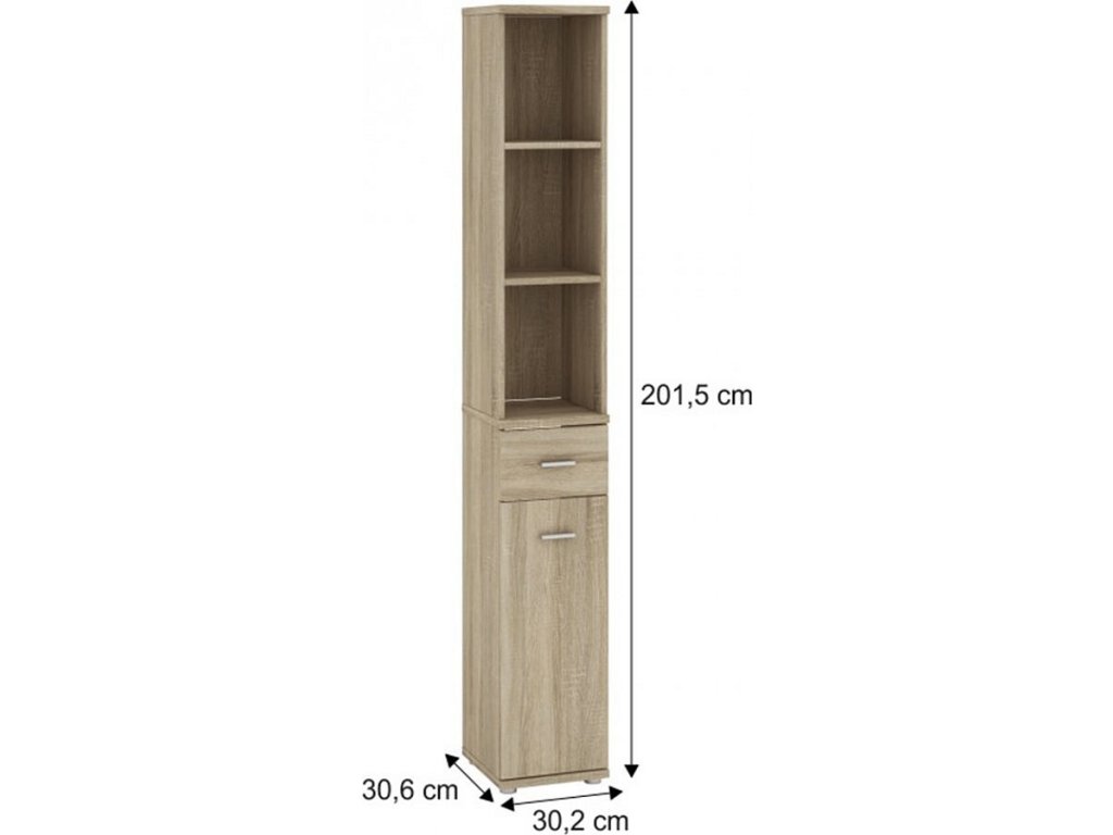 Komoda s nástavcem Mario New Typ B + C, komponent z předsíňové sestavy, Materiál DTD laminovaná Barevné provedení: dub sonoma. Rozměry: (ŠxVxH): 30,2x201,5x30,6 cm. Tloušťka materiálu: 16/22 mm Dvířka mají hladké zakončení.