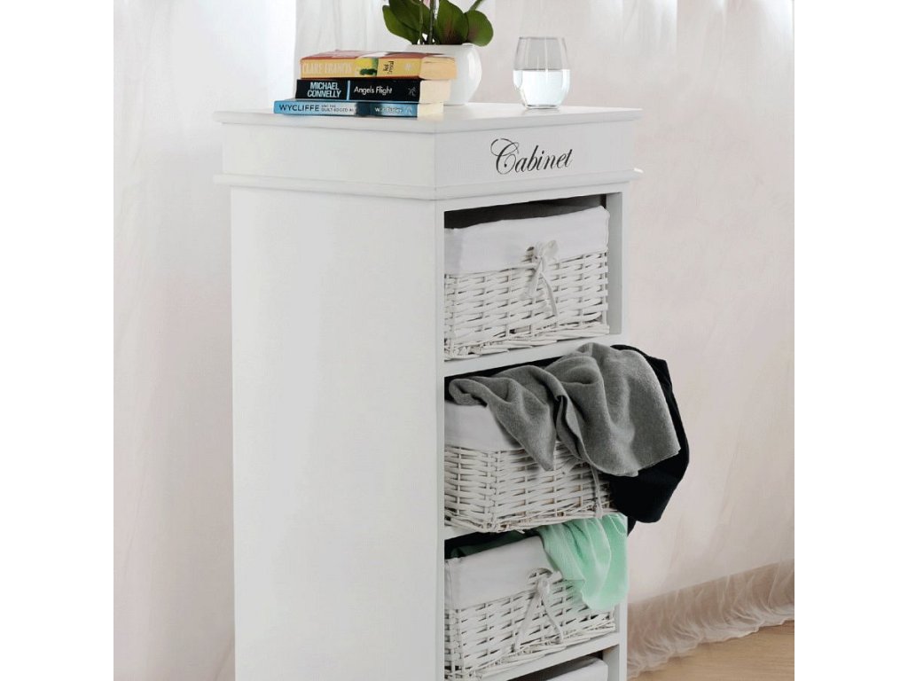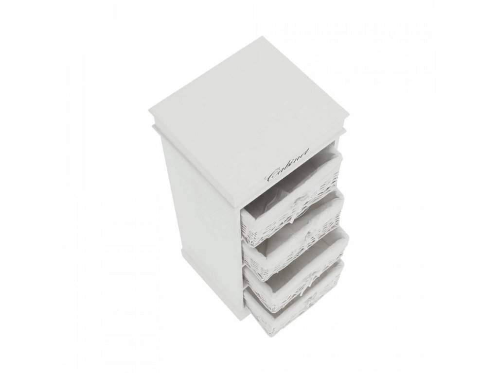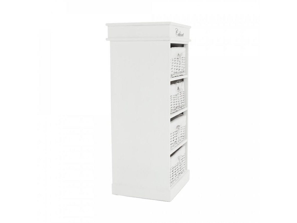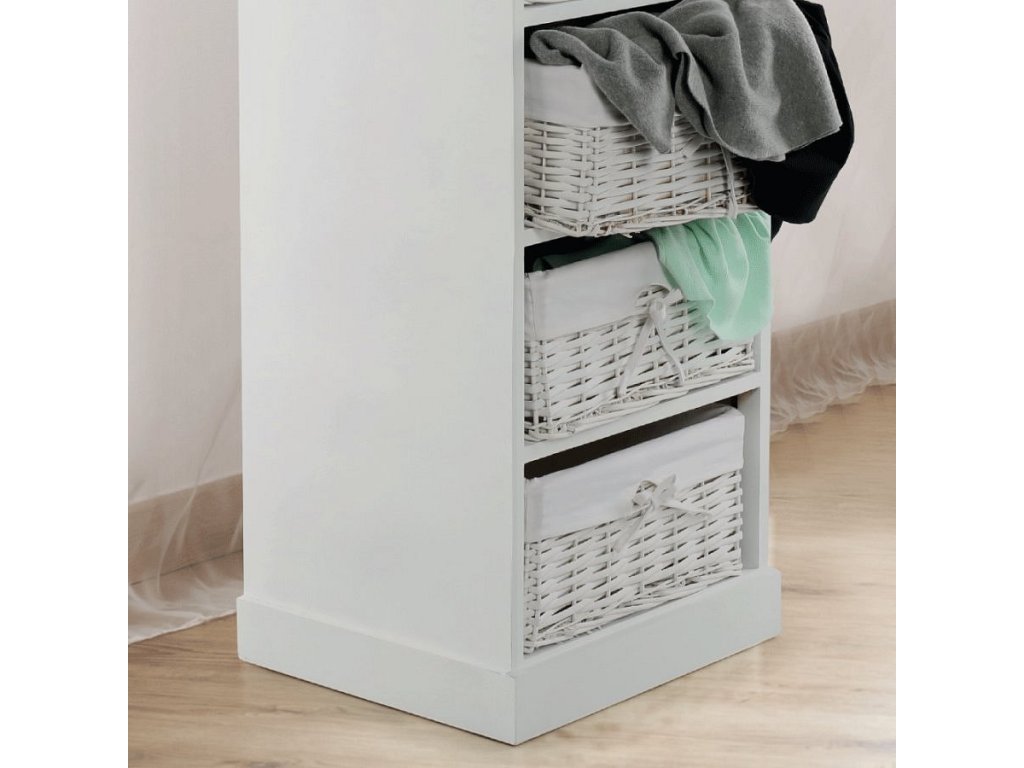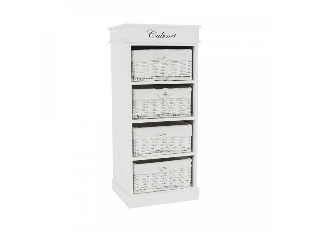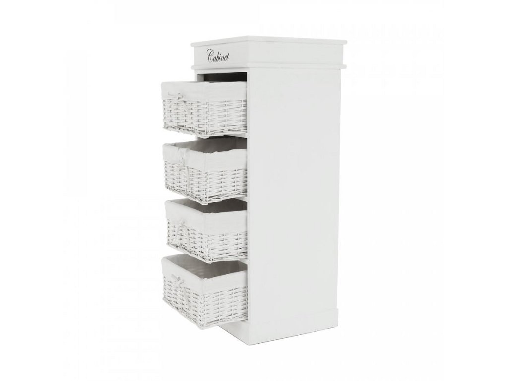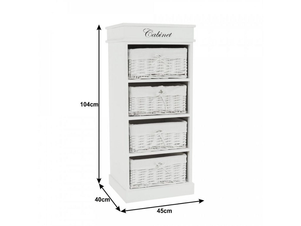 4- šuplíková komoda BLANCO materiál: dřevo / proutí / látka barevné provedení: bílá rozměry: (ŠxHxV): 45x40x104 cm Dodávané v demontu.