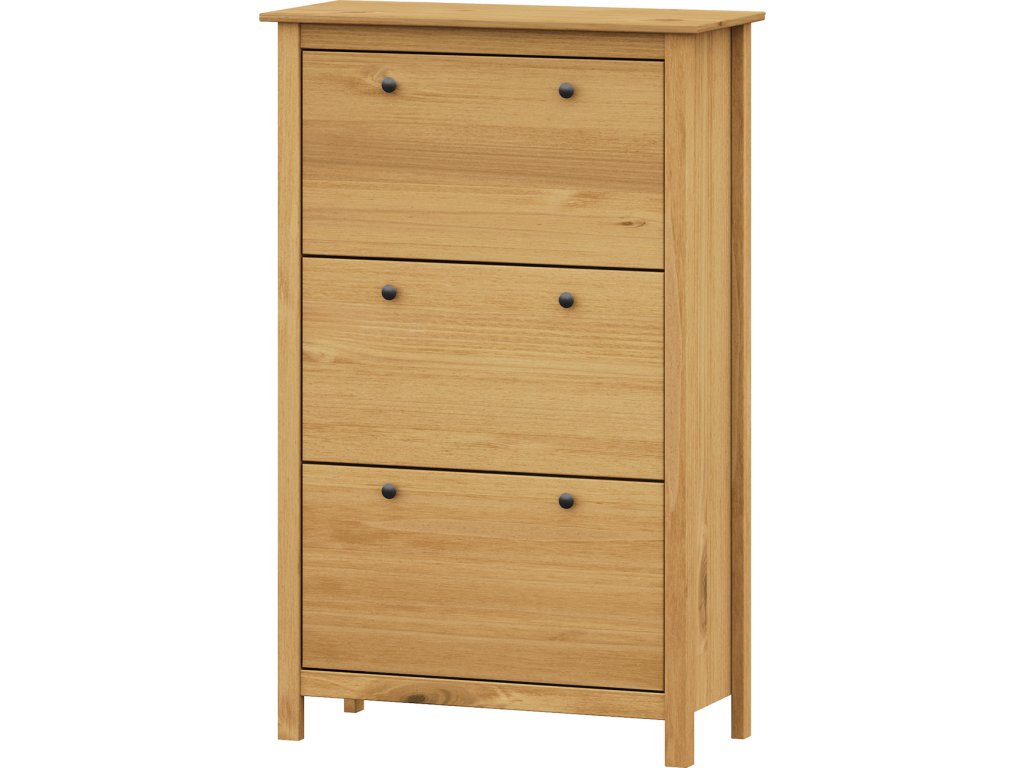 materiál masiv borovice voskovaná v medovém odstínu kovové úchytky v barevném provedení černěná mosaz 3 dvouřadé výklopy